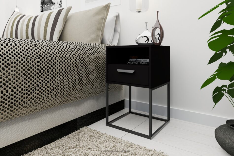 Mały stolik nocny z szufladą czarny 2szt RECTUS - kolor czarny