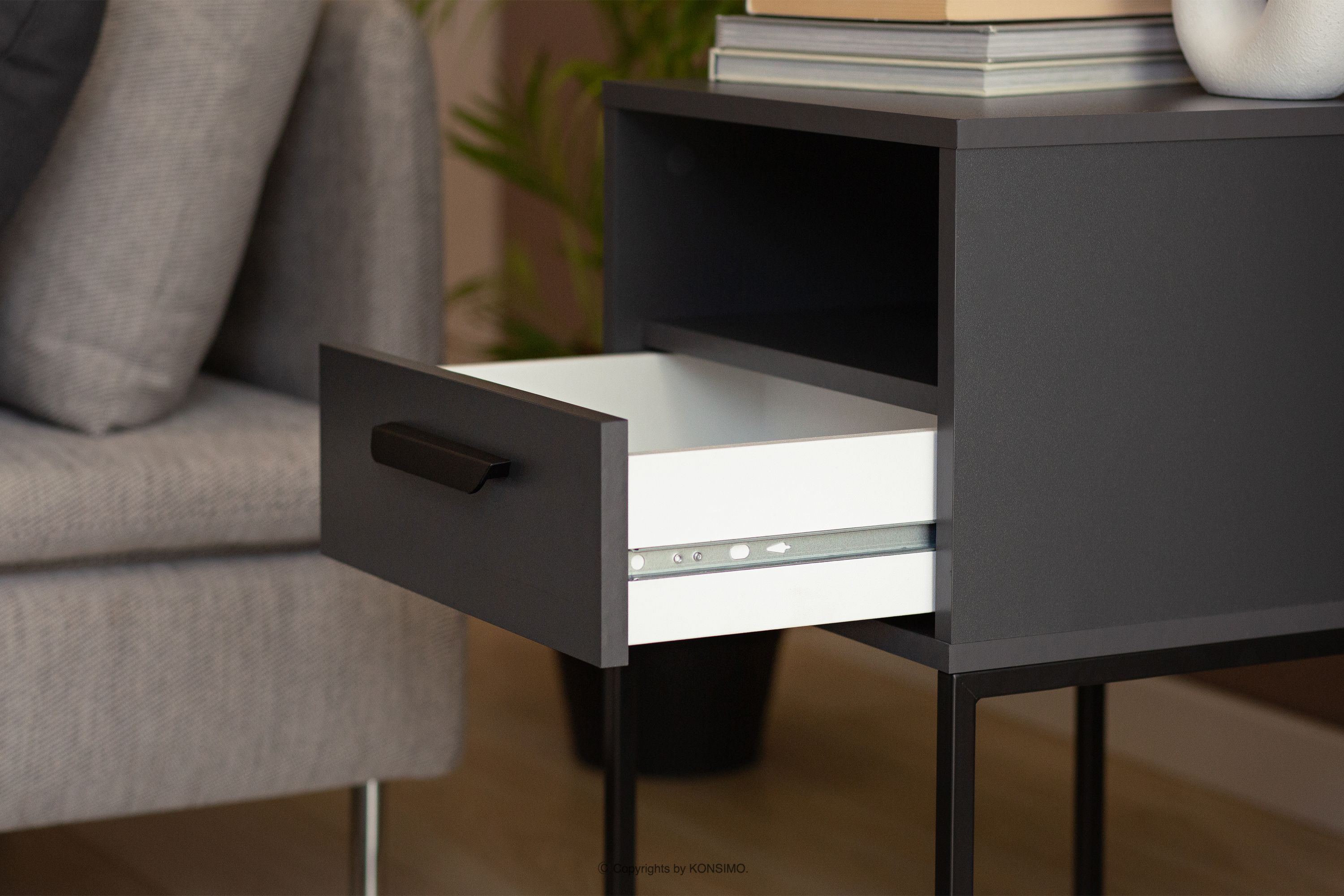 RECTUS zobacz całą kolekcję Mały stolik nocny z szufladą antracytowy 2szt- kolor antracytowy/czarny