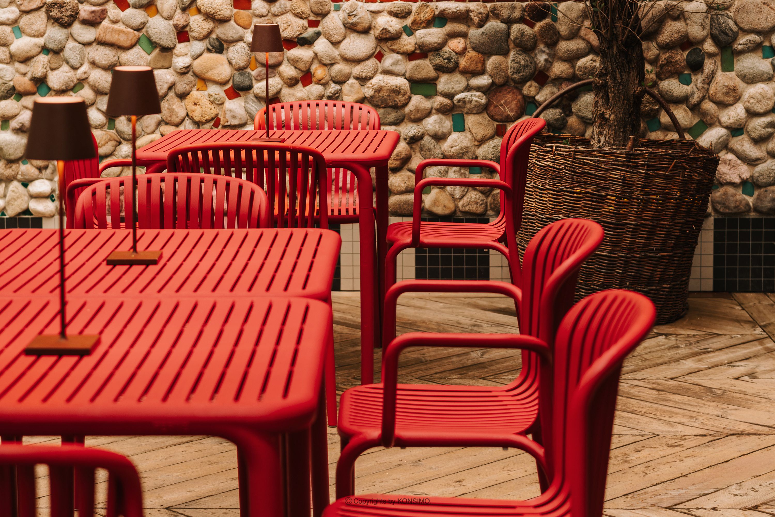 FICCARI zobacz całą kolekcję Zestaw krzesła i stół na taras polipropylen z włóknem szklanym czerwony 4 os.- kolor czerwony