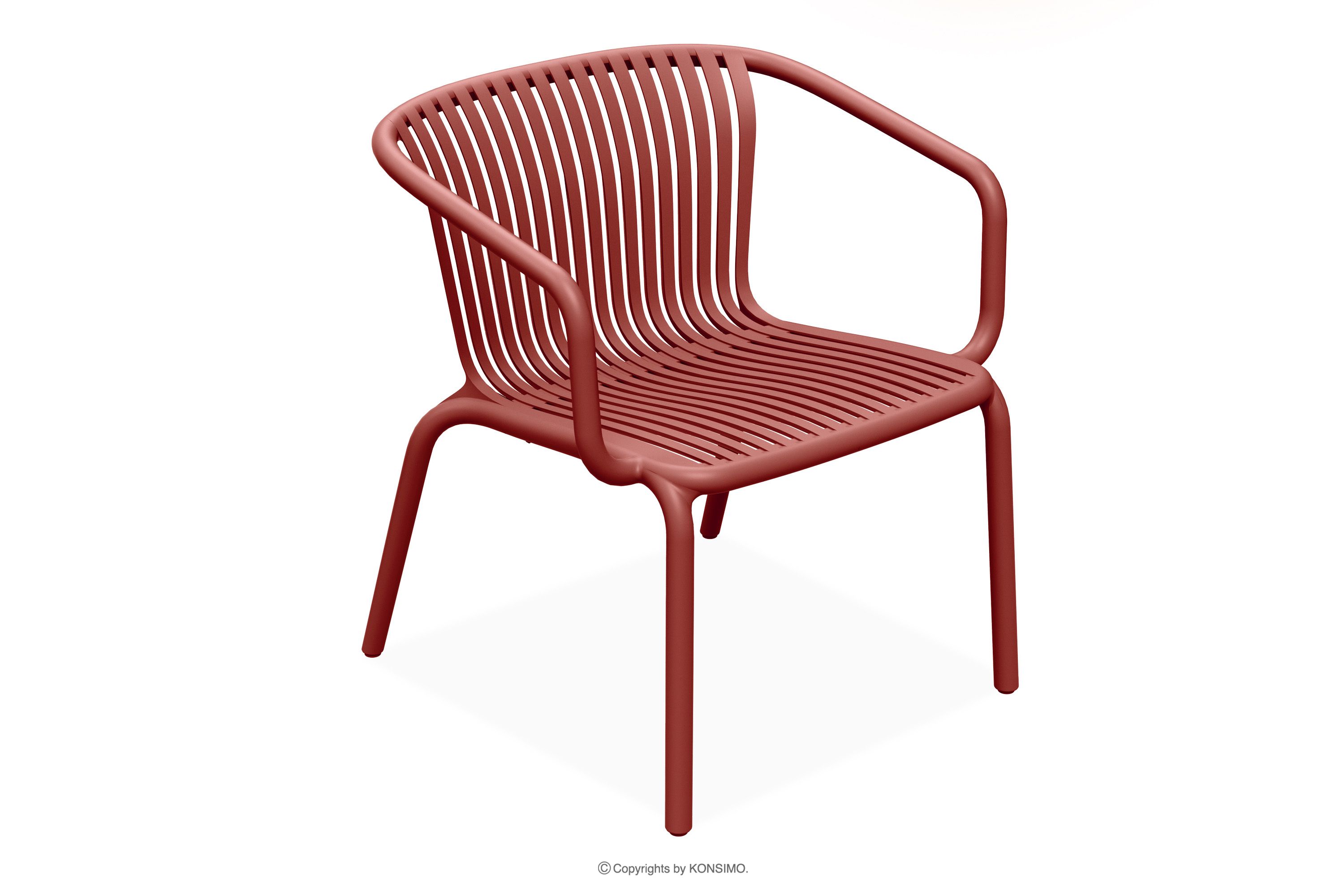 Fotele i stolik na ogród czerwony 4 os. idealnie łączy minimalistyczną estetykę z wyjątkową funkcjonalnością. Wykonana z wysokogatunkowego tworzywa sztucznego - specjalnej mieszanki polipropylenu wzbogaconej włóknem szklanym - gwarantuje niezrównaną trwałość i odporność na zmienne warunki atmosferyczne. Innowacyjna konstrukcja każdego elementu zapobiega gromadzeniu się wody deszczowej, dzięki czemu meble błyskawicznie wysychają nawet po intensywnych opadach.
