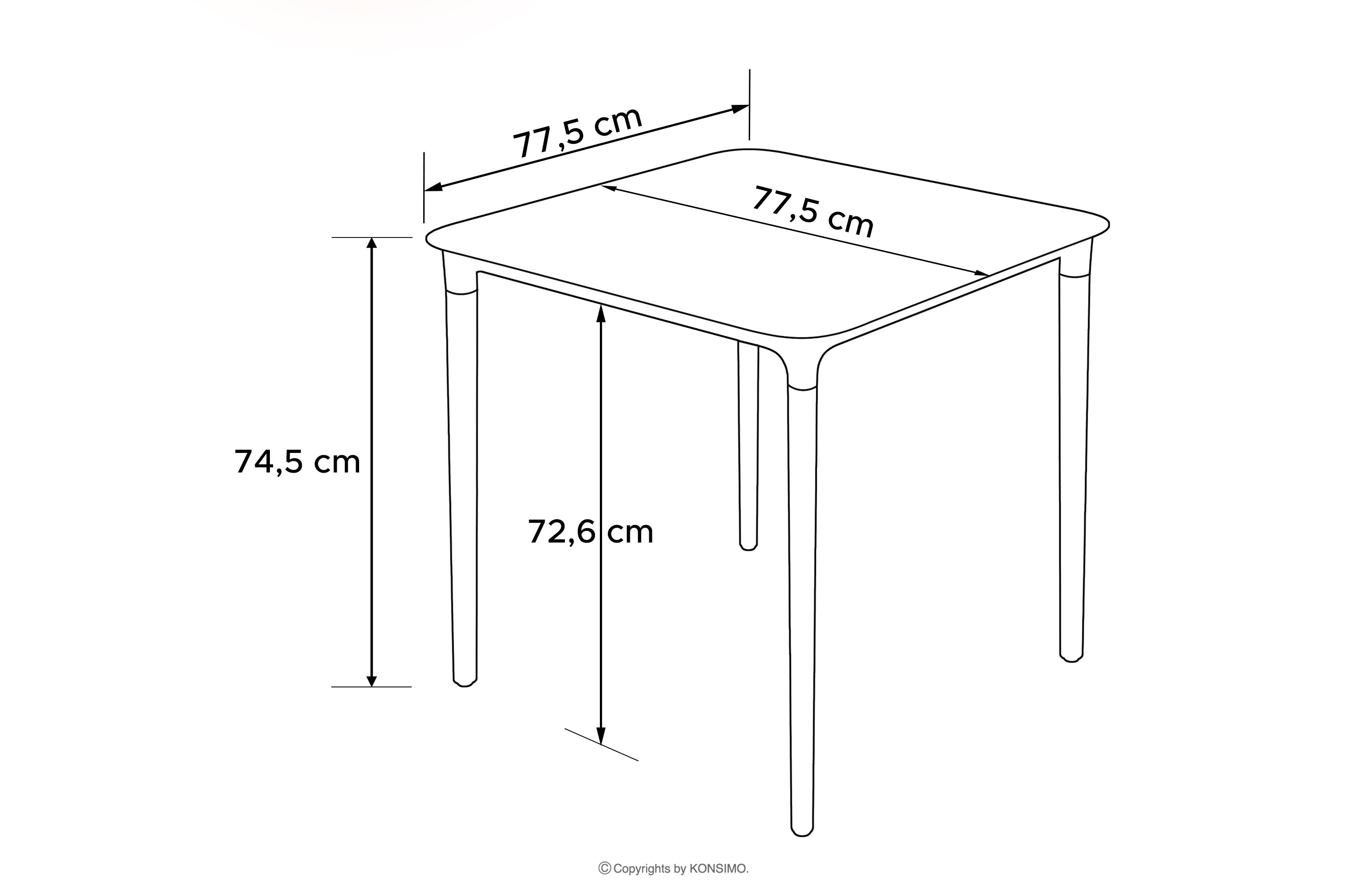 - Stół (cm): 77,5x74,5x77,5