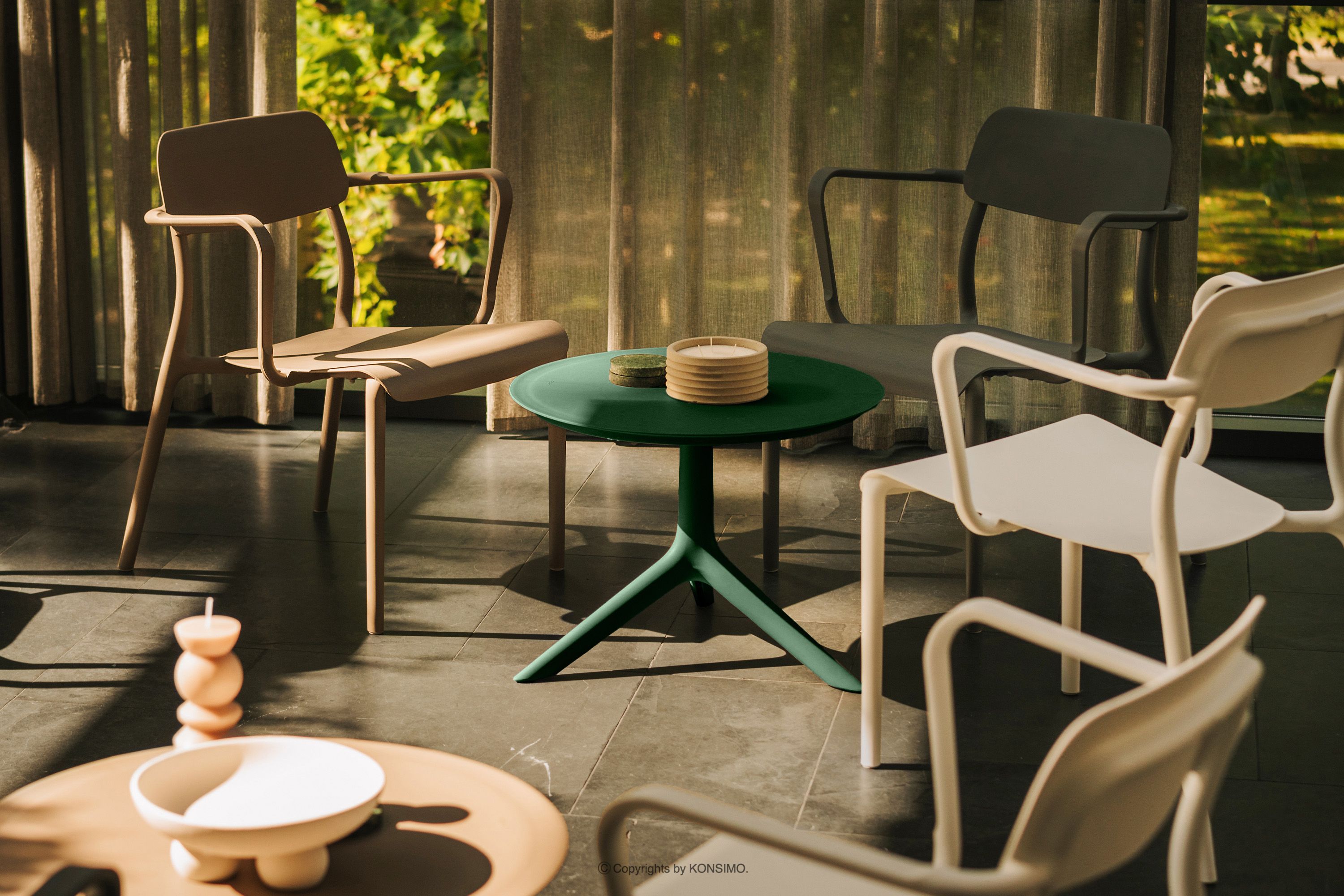 Kolekcja GALIO to kompletne rozwiązanie dla przestrzeni zewnętrznych, łączące elegancję nowoczesnego wzornictwa z praktycznymi aspektami codziennego użytkowania. W skład serii wchodzą nie tylko komfortowe krzesła i funkcjonalne stoły, ale również wygodne fotele o ergonomicznym kształcie oraz gotowe zestawy mebli, idealnie dopasowane do różnych potrzeb i przestrzeni. Wszystkie elementy kolekcji są w pełni kompatybilne, pozwalając na tworzenie własnych kompozycji dostosowanych do indywidualnych preferencji i wielkości dostępnej przestrzeni. Kolekcja GALIO to idealne połączenie nowoczesnej estetyki, funkcjonalności i troski o środowisko, które sprawi, że każda chwila spędzona na świeżym powietrzu stanie się jeszcze przyjemniejsza.