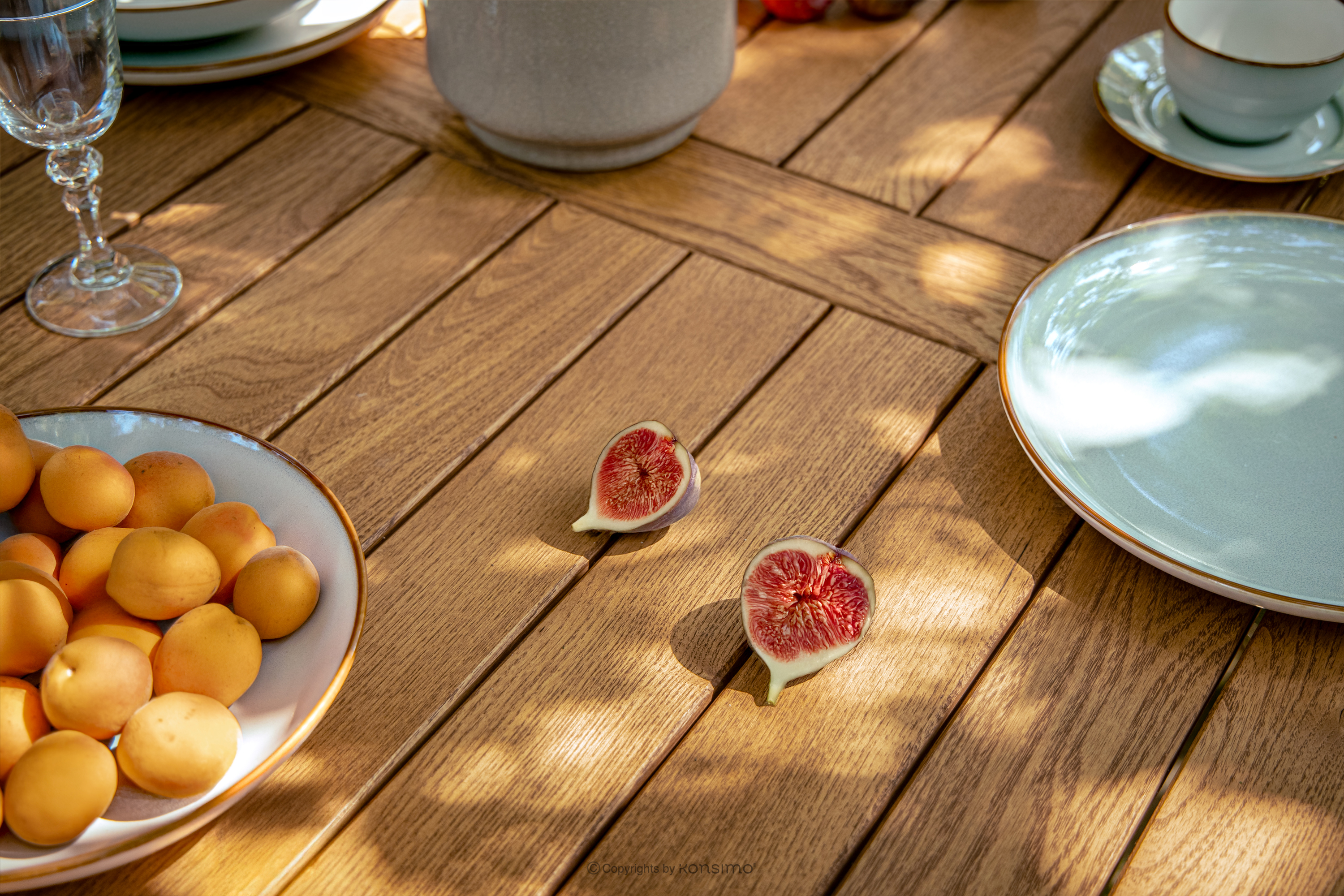- Czyszczenie i pielęgnacja: żeby zachować pierwotny wygląd mebli, zalecamy okresową pielegnację (1-3 razy w sezonie w zależności od warunków atmosferycznych) olejami do mebli zewnętrznych, odpowiednich do drewna twardego