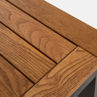 Kluczową cechą kolekcji jest pierwsza klasa odporności na warunki zewnętrzne. Meble zachowują stabilność i estetykę mimo zmiennych temperatur, wilgoci czy intensywnego użytkowania. Stelaże są na stałe zespawane, co eliminuje konieczność skomplikowanego montażu i zwiększa trwałość konstrukcji. Całość tworzy stabilną, bezpieczną i solidną konstrukcję, gotową do natychmiastowego użytkowania. Do produkcji mebli wykorzystano wyłącznie najwyższej jakości europejskie lite drewno robinii akacjowej – jedno z najtwardszych i najbardziej odpornych gatunków drewna stosowanych w meblarstwie zewnętrznym. Drewno to przewyższa twardością dąb i buk, co czyni je idealnym materiałem do użytkowania na zewnątrz przez wiele lat. Jego naturalna, szlachetna struktura nadaje meblom wyjątkowy charakter i podkreśla ich autentyczność.