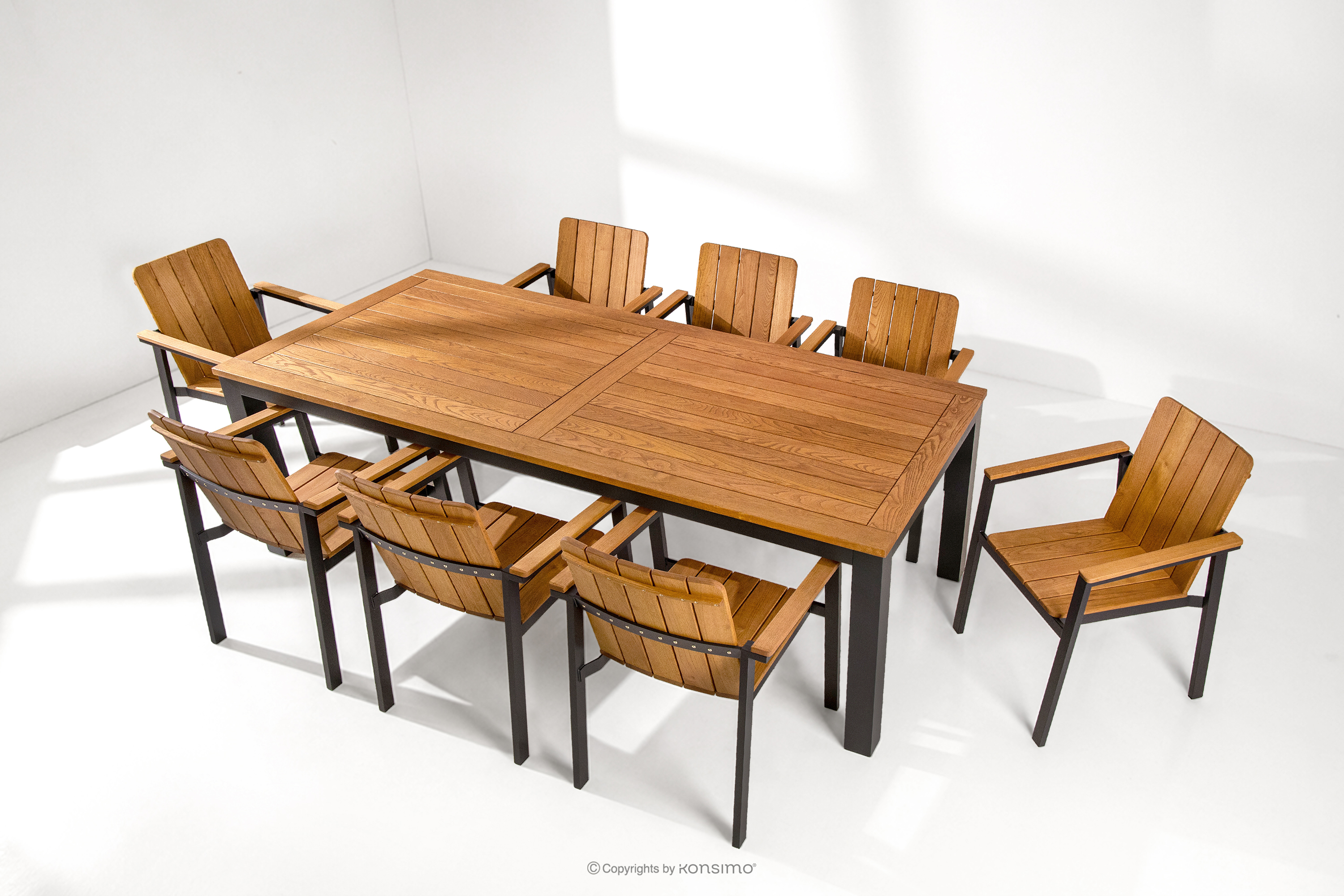 Drewniany stół ogrodowy z krzesłami 8szt LENTI - kolor brązowy/antracytowy