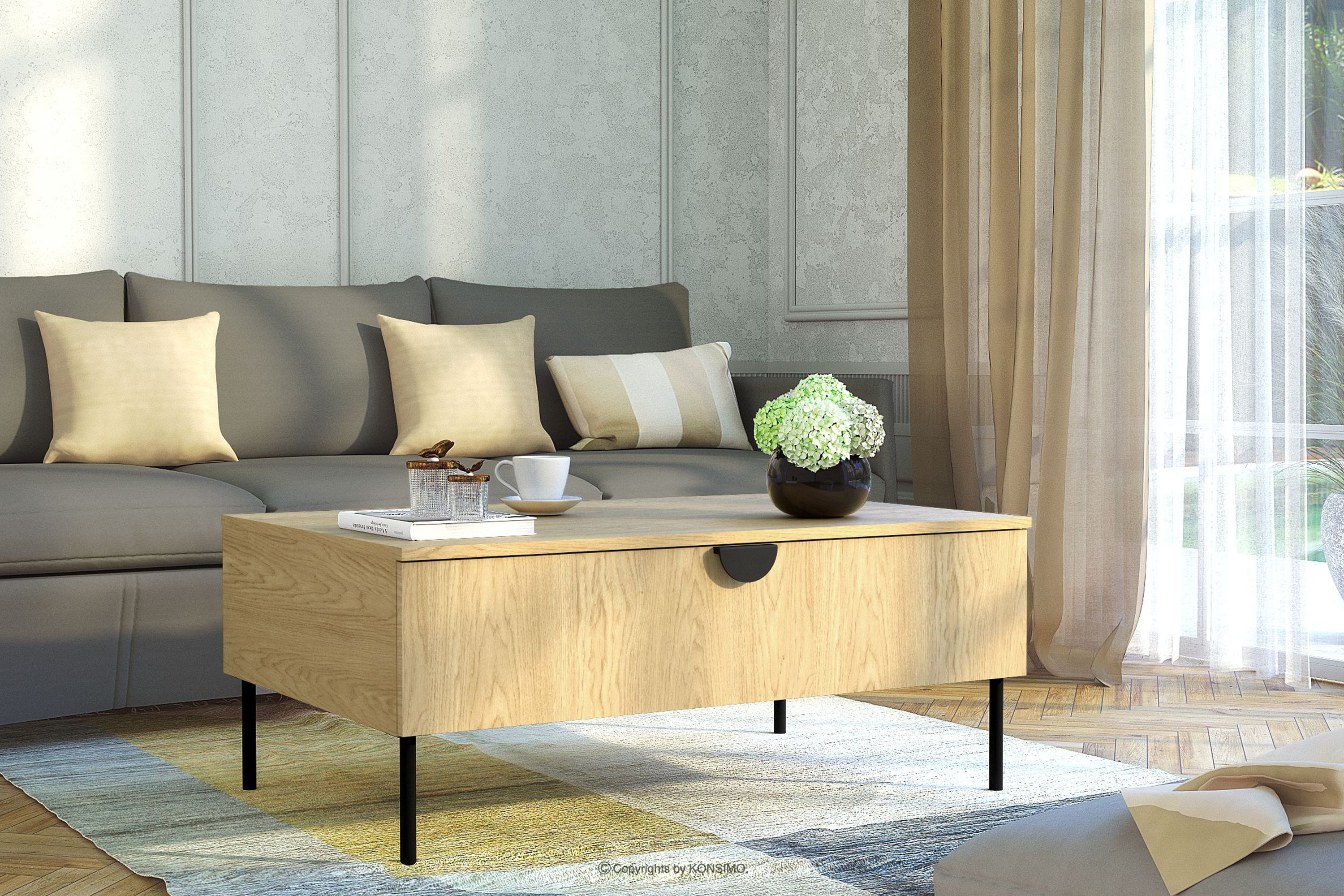 VIDIS zobacz całą kolekcję Nowoczesny stolik kawowy ze schowkiem jasny dąb/czarny- kolor jasny dąb/czarny