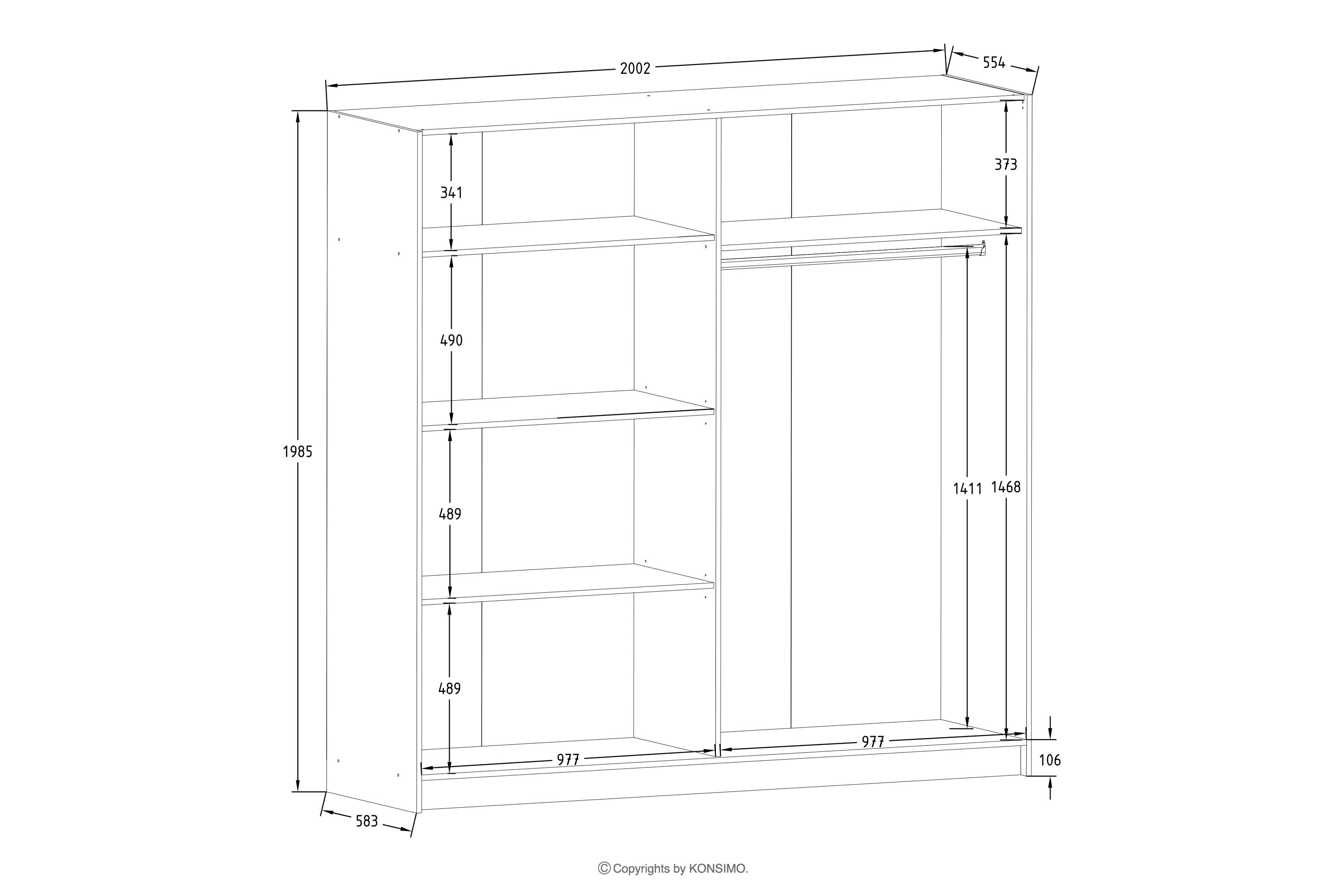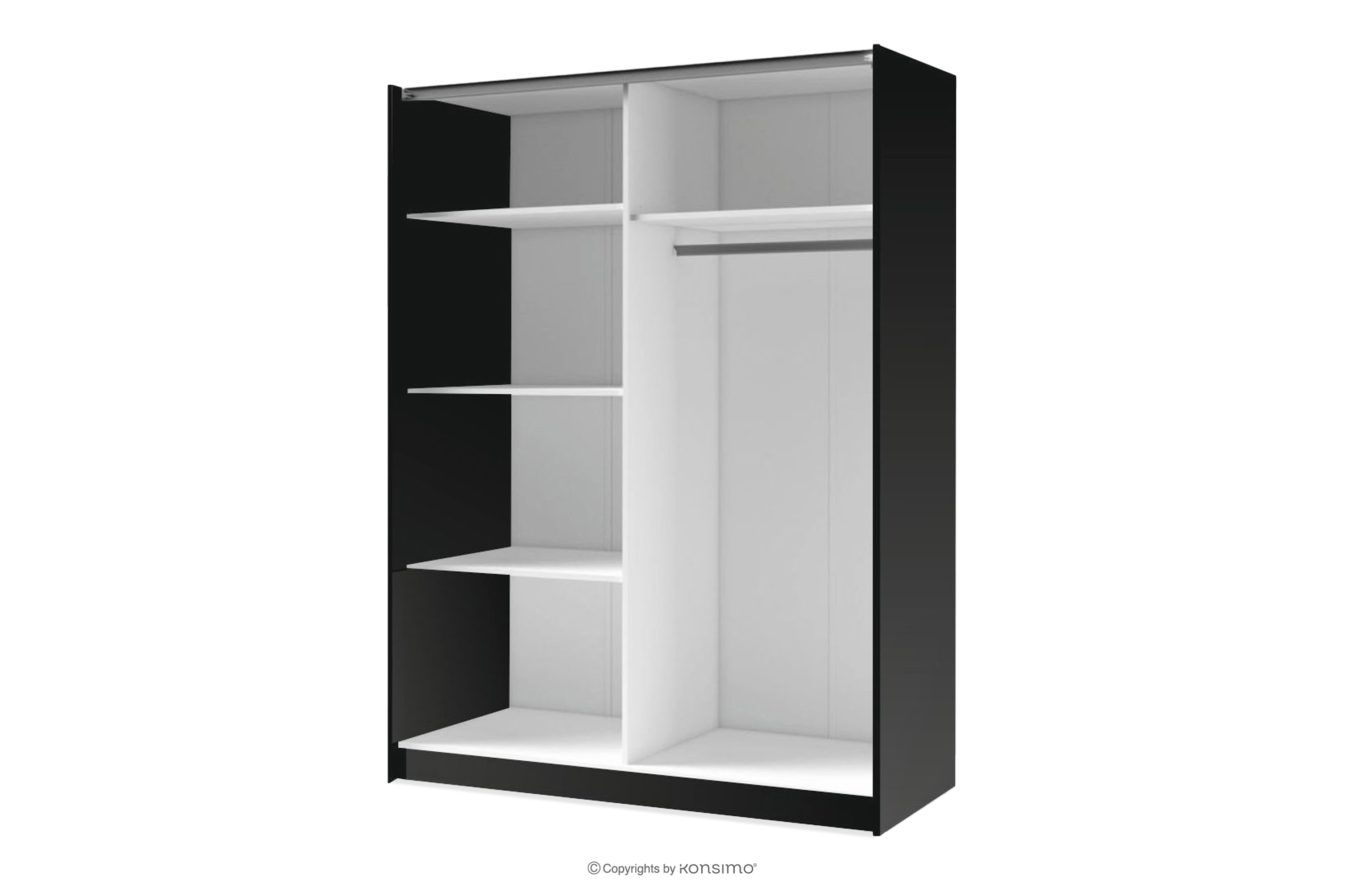 - Dodatkowe informacje: Górny system jezdny, który schowany jest w środku. Na dole znajduje się cokół, który ma funkcje wzacniające i blokujące dostawanie się kurzu pod szafę