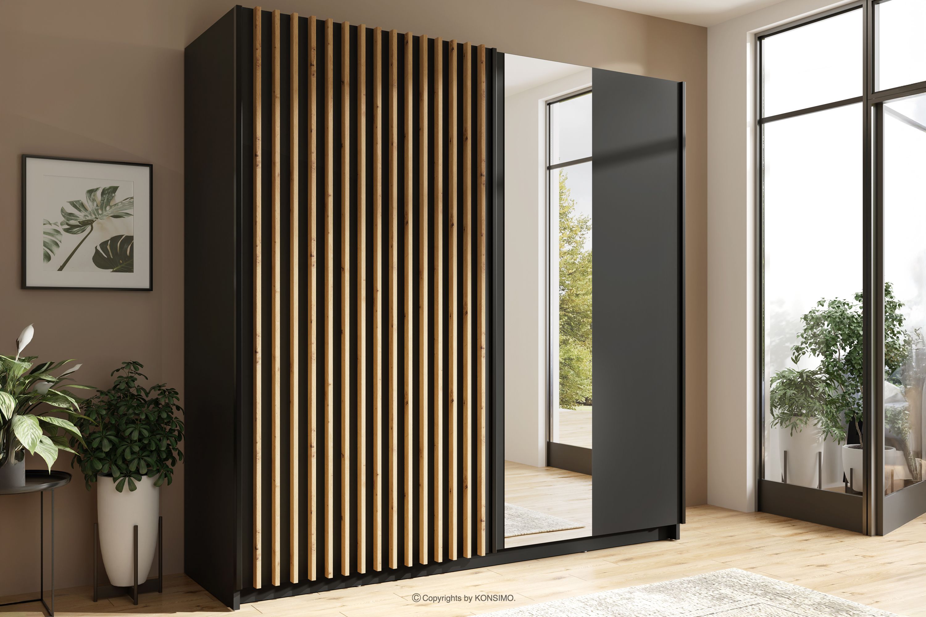 CASTARI zobacz całą kolekcję Duża szafa przesuwna z lustrem i lamelami czarny/dąb artisan- kolor czarny/dąb artisan