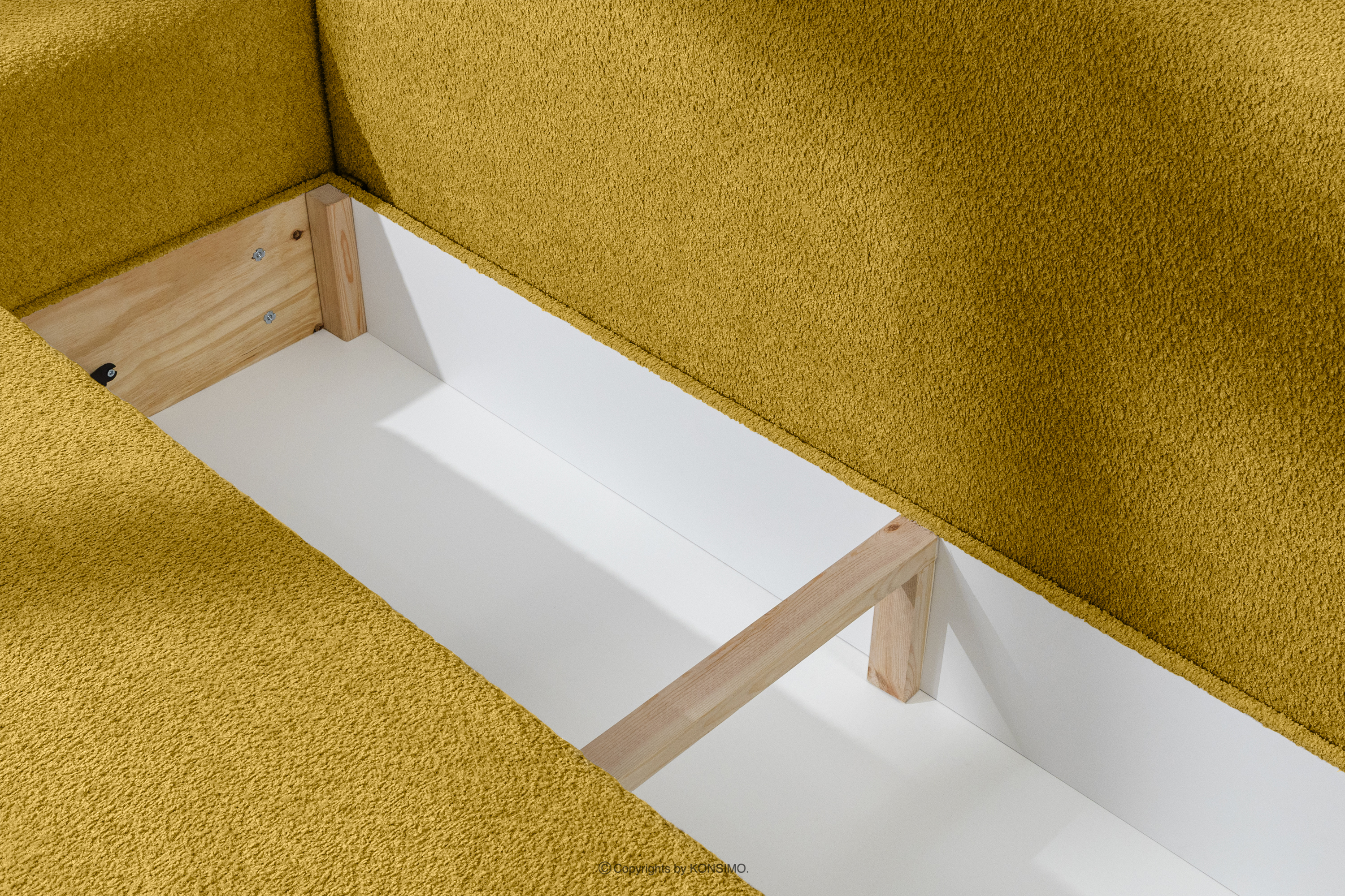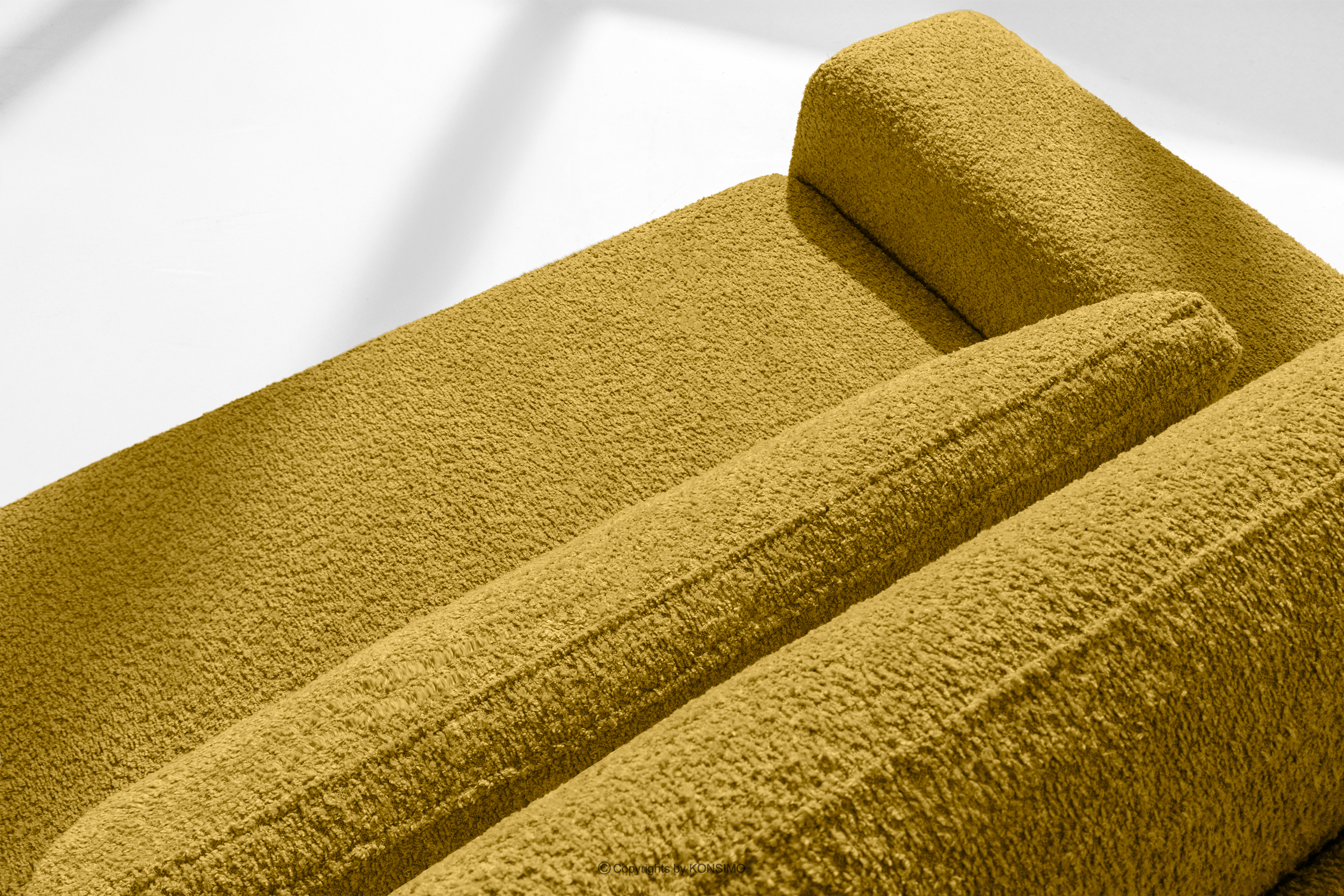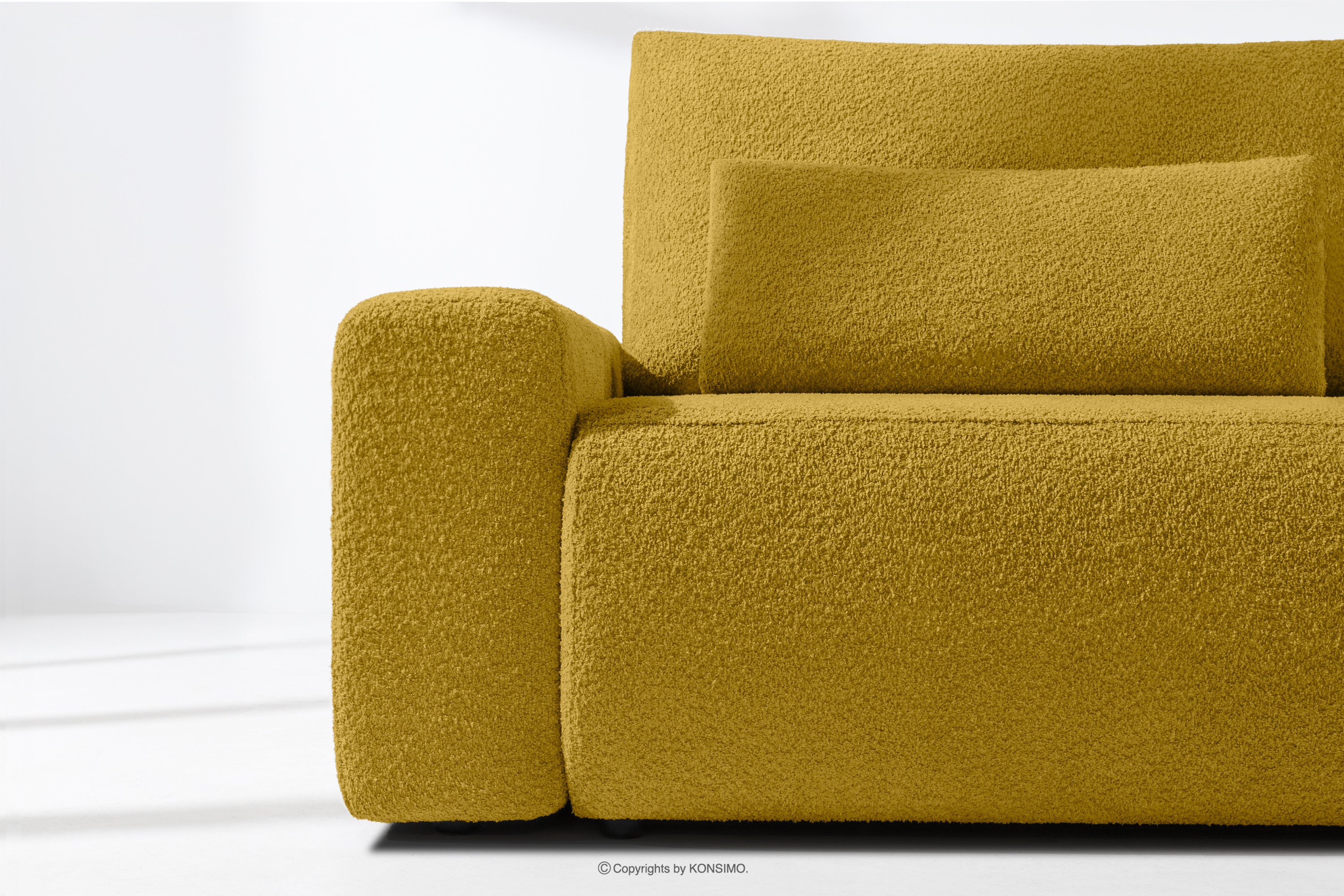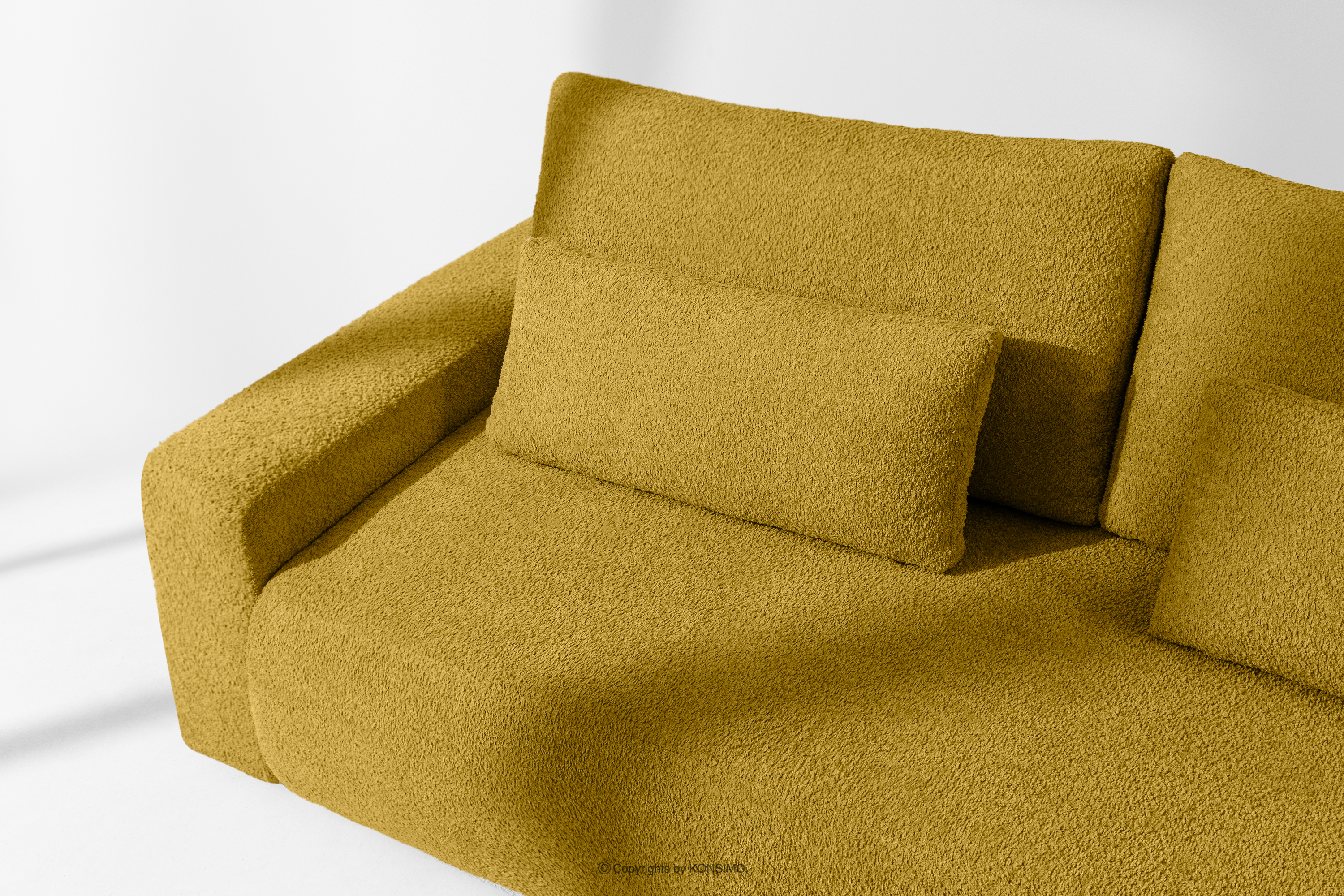 MOLLIS zobacz całą kolekcję Sofa trzyosobowa z poduszkami rozkładana tkanina boucle żółty- kolor żółty
