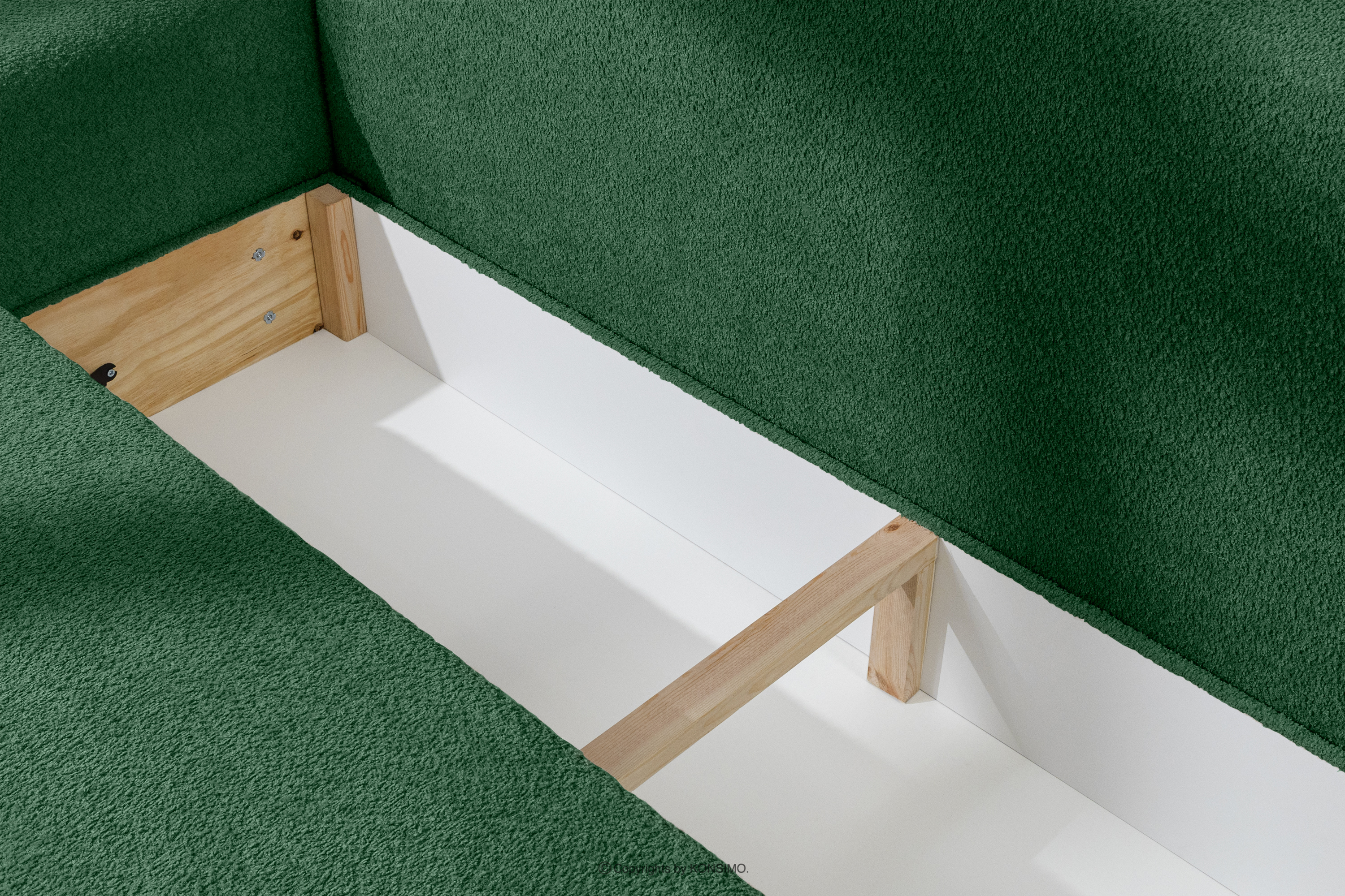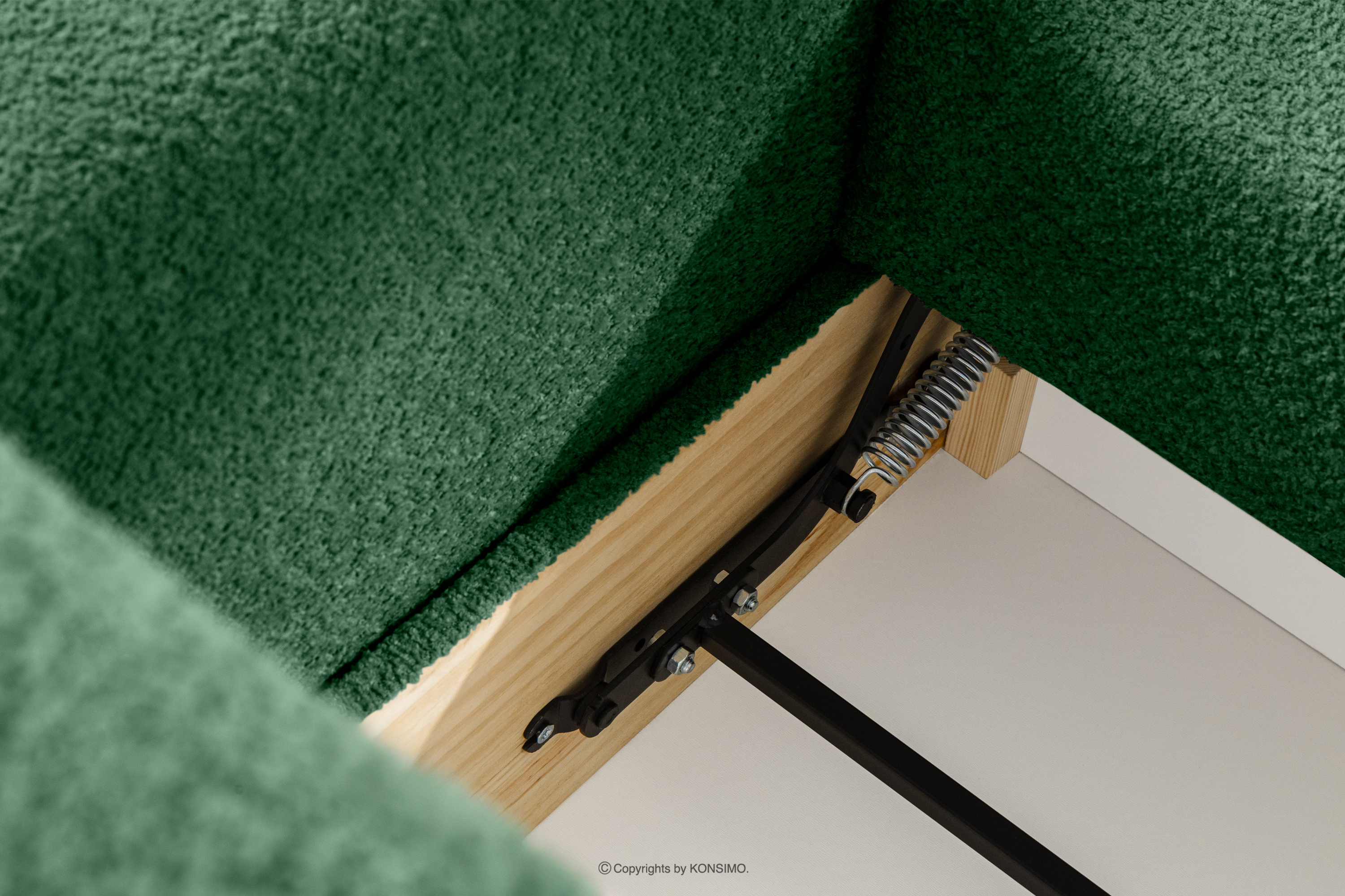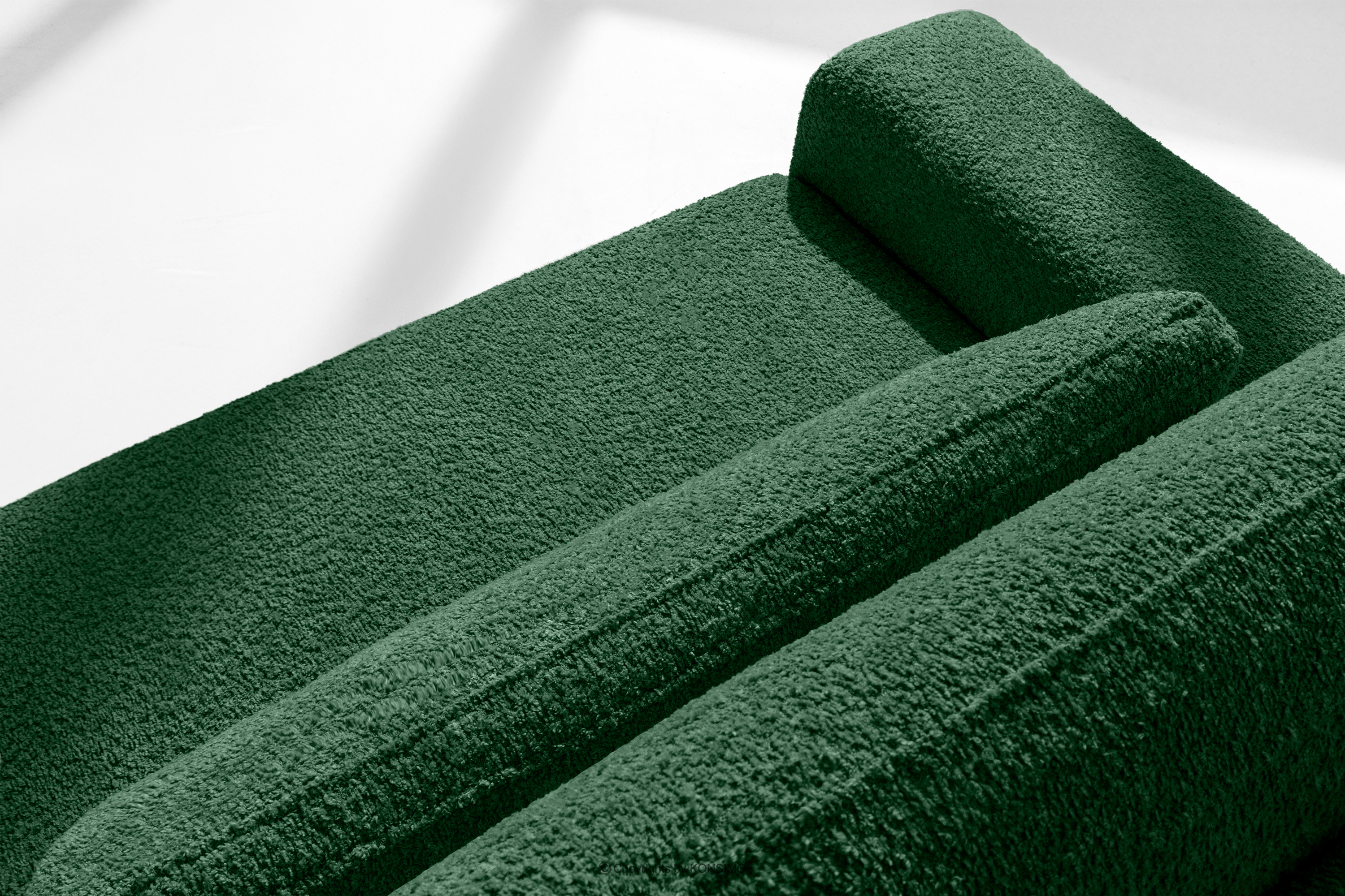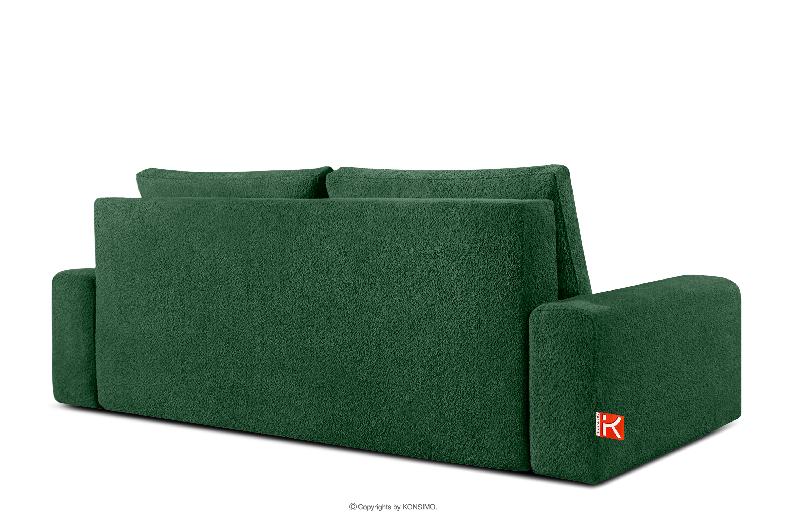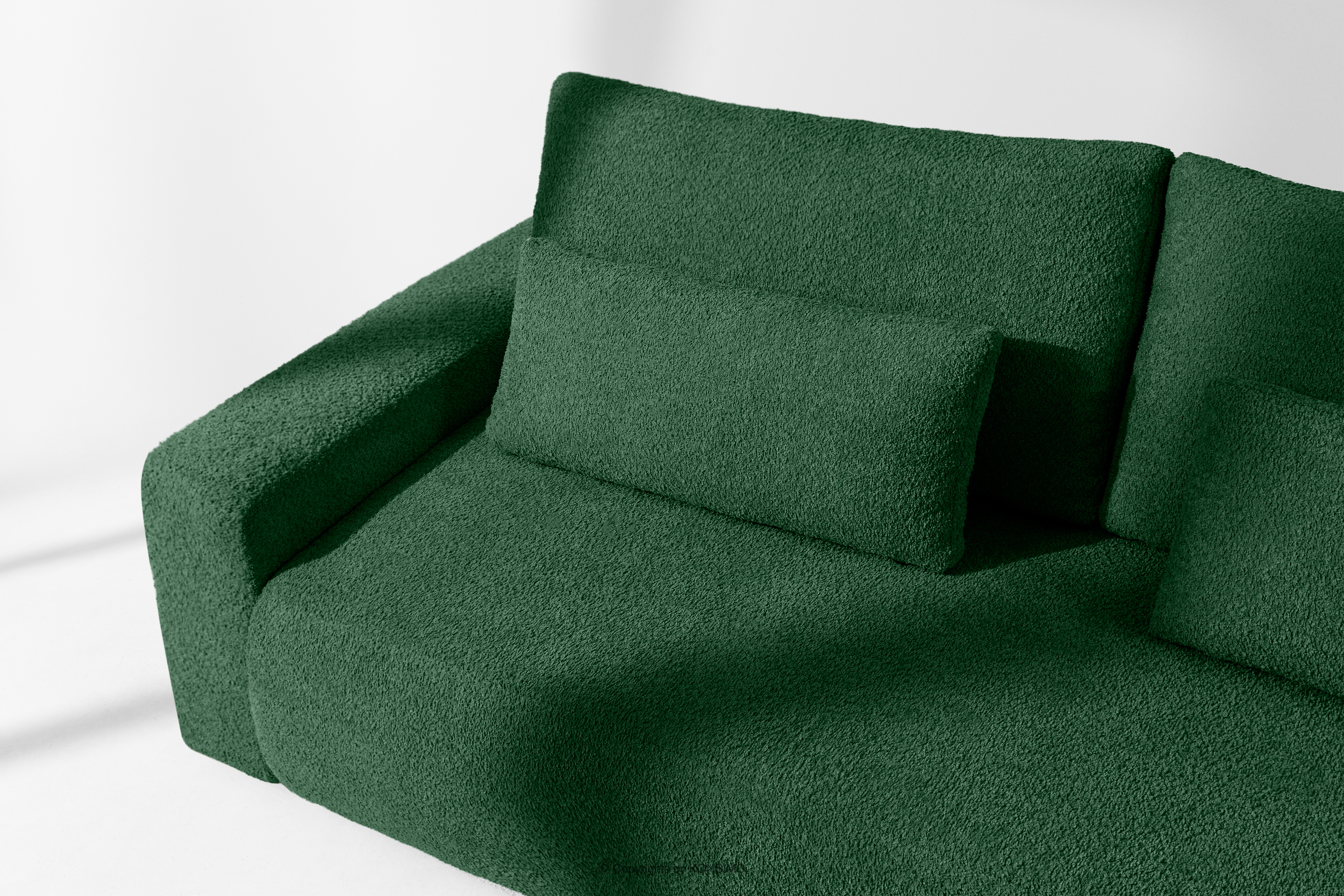 MOLLIS zobacz całą kolekcję Sofa trzyosobowa z poduszkami rozkładana tkanina boucle ciemny zielony- kolor ciemny zielony