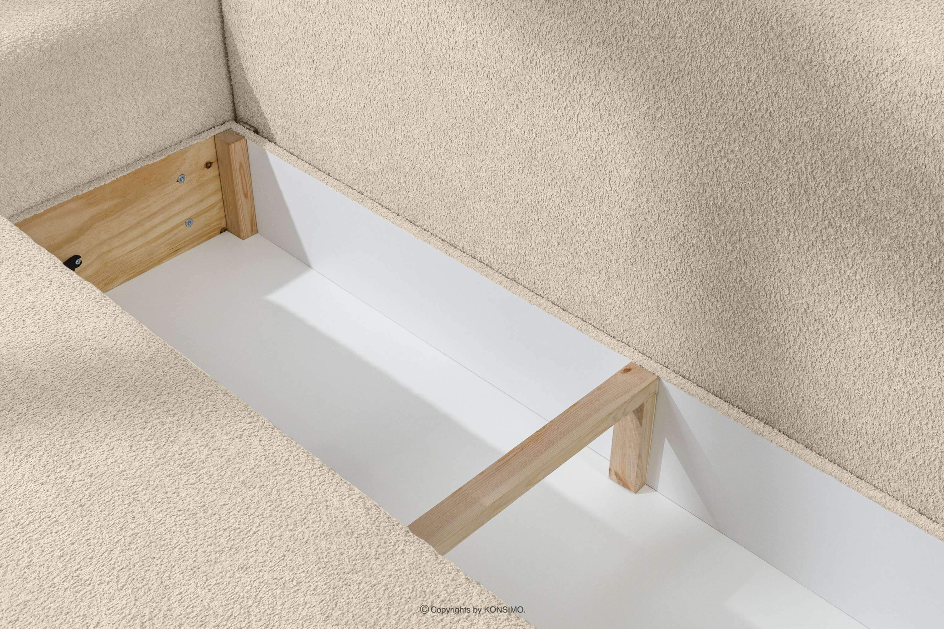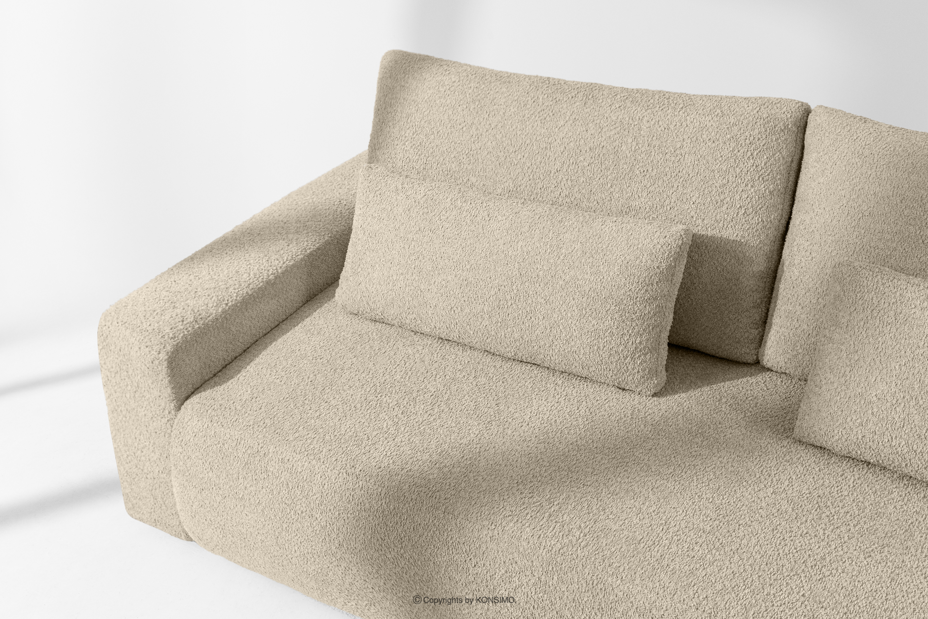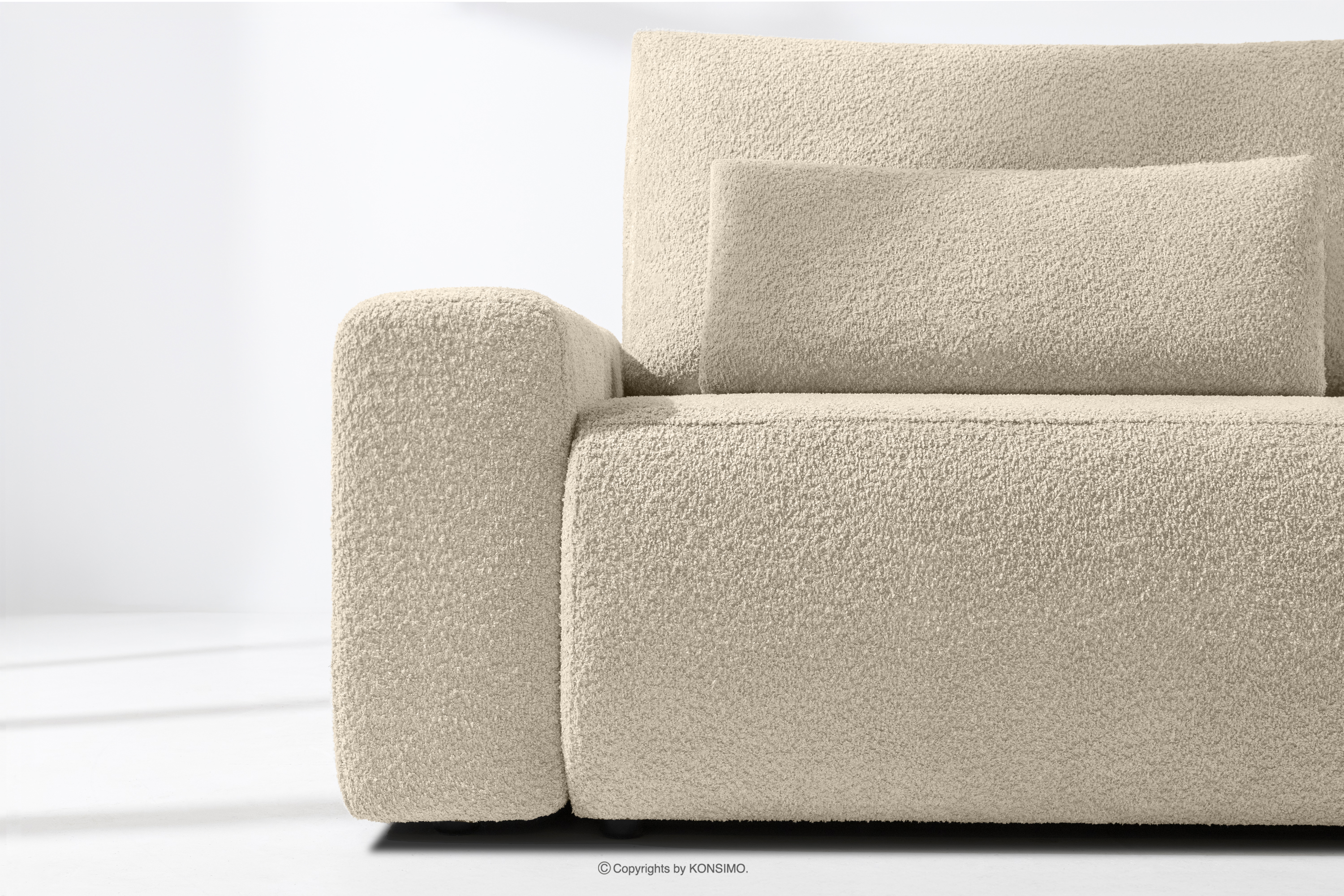 MOLLIS zobacz całą kolekcję Rozkładana sofa z poduszkami tkanina boucle jasny beżowy- kolor jasny beżowy