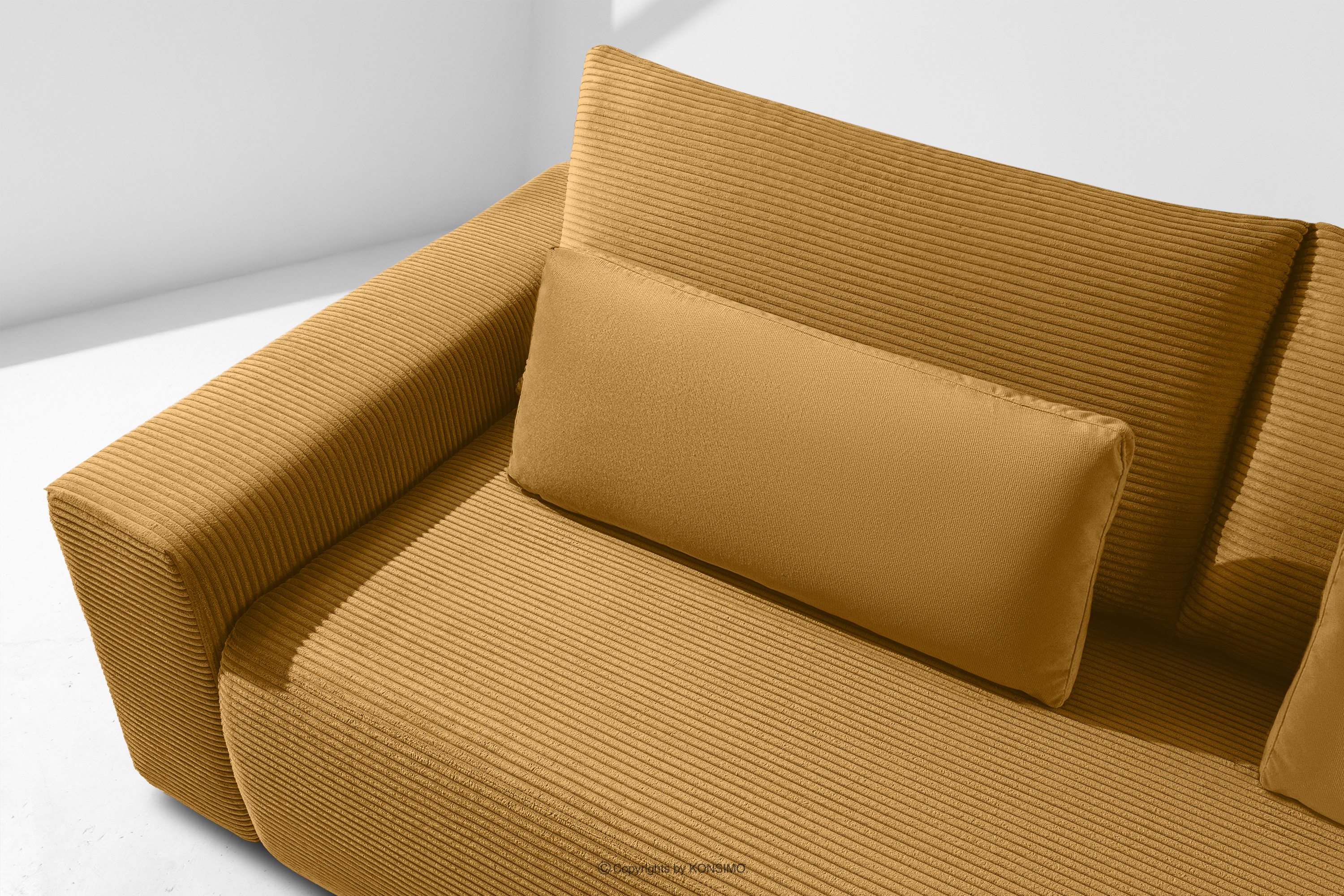 MOLLIS zobacz całą kolekcję Sofa trzyosobowa z poduszkami rozkładana tkanina sztruks / welur żółty- kolor żółty