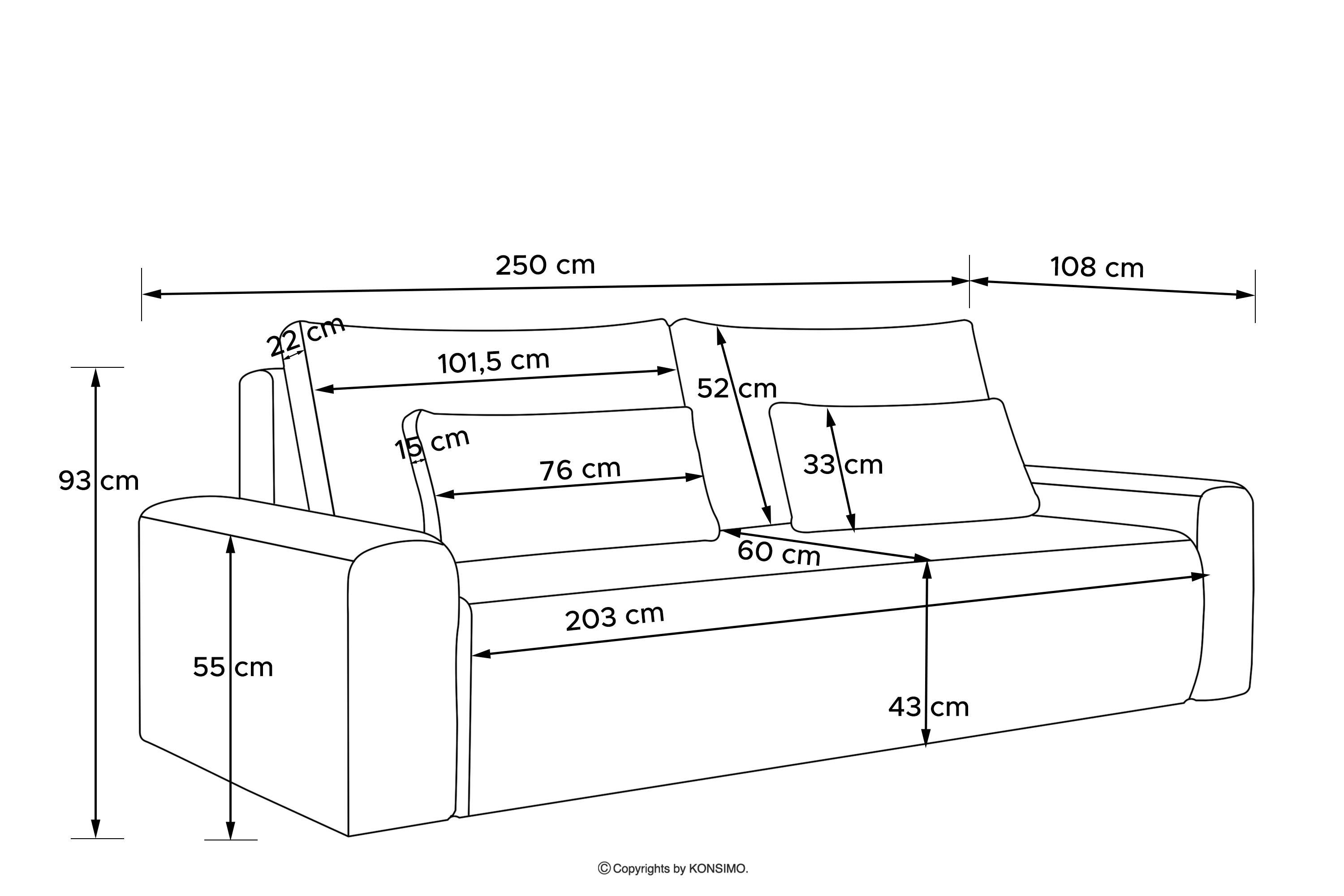 - 250x93x108 cm
