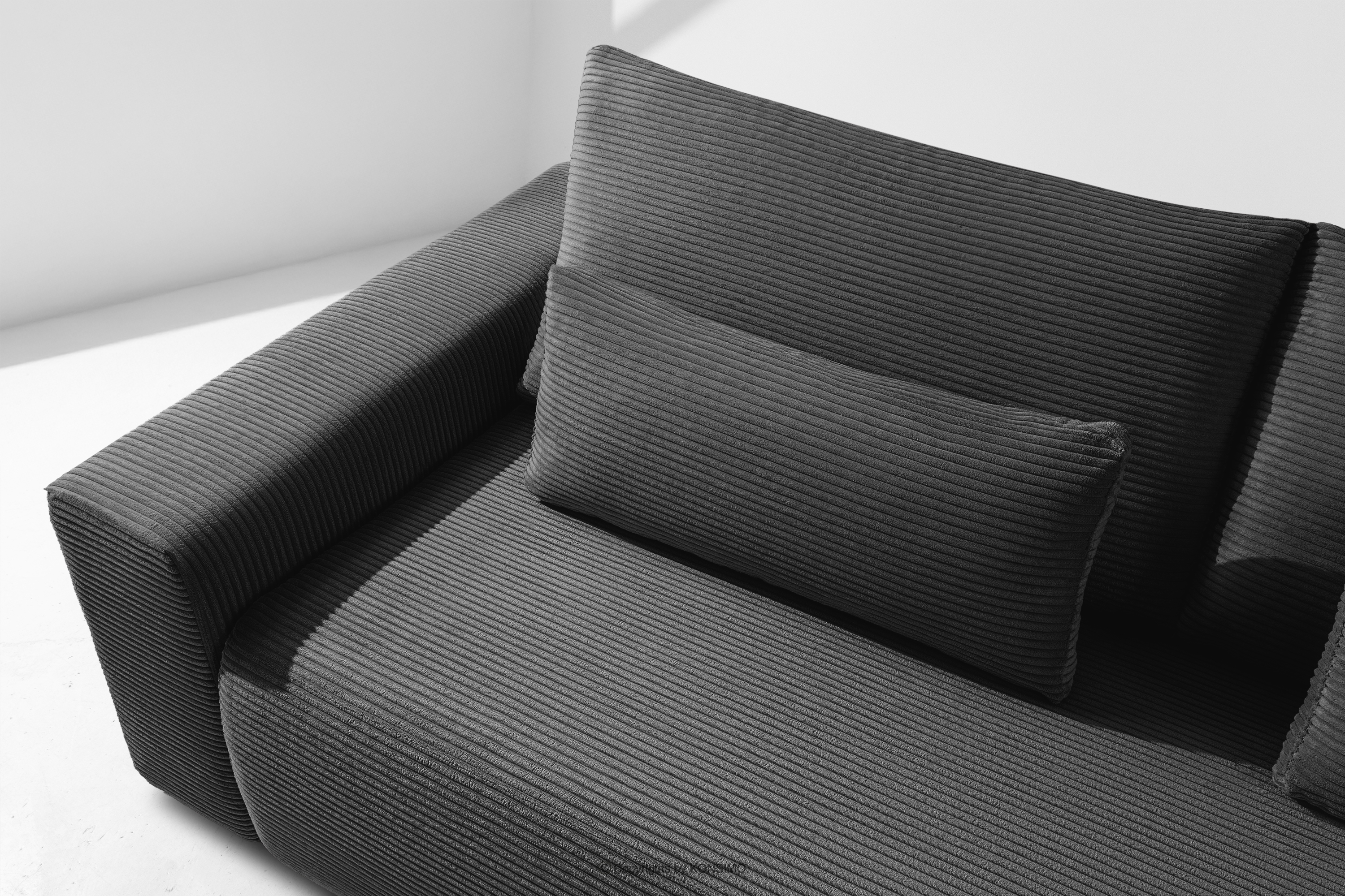 MOLLIS zobacz całą kolekcję Rozkładana sofa z poduszkami tkanina sztruks szary- kolor szary