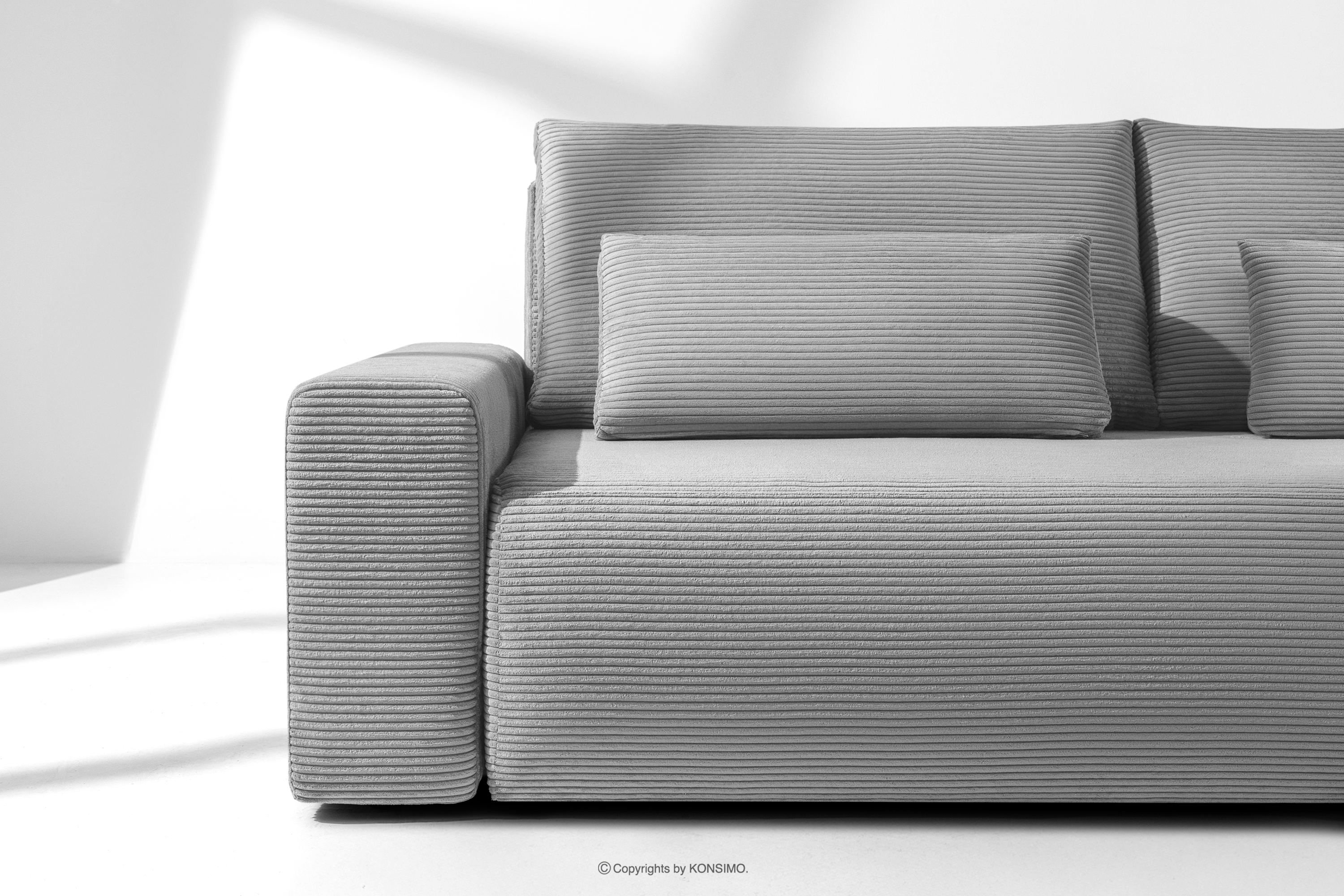 MOLLIS zobacz całą kolekcję Rozkładana sofa z poduszkami tkanina sztruks jasny szary- kolor jasny szary