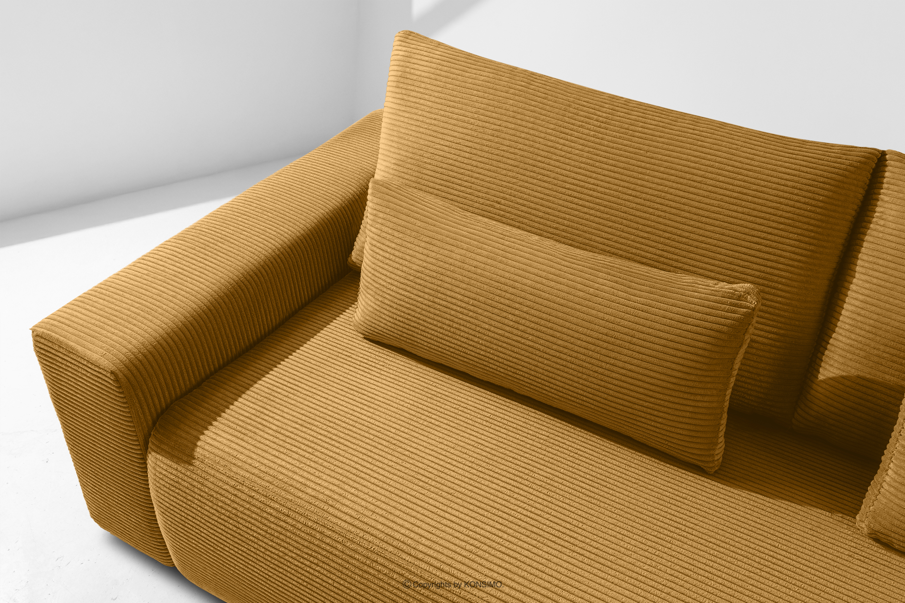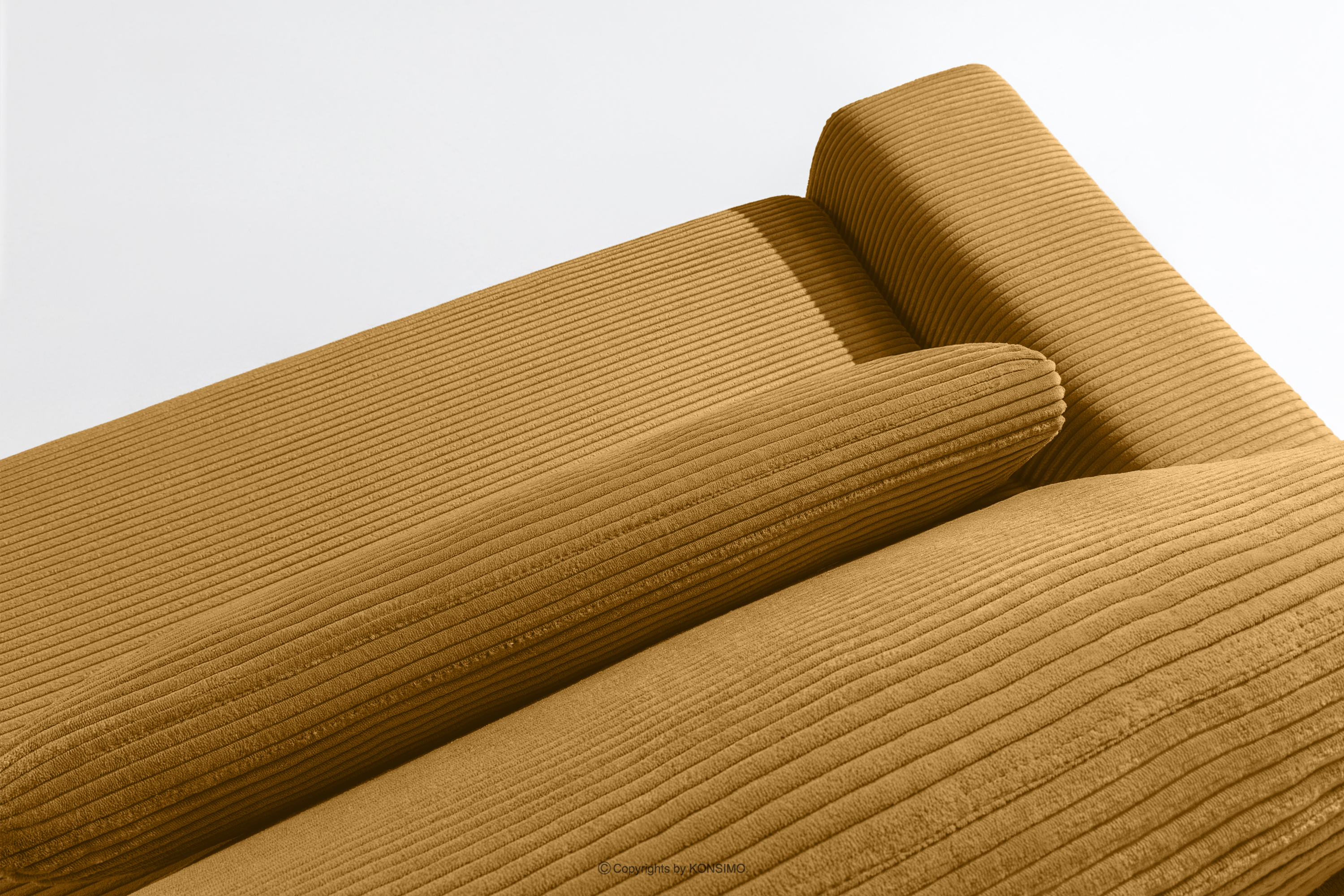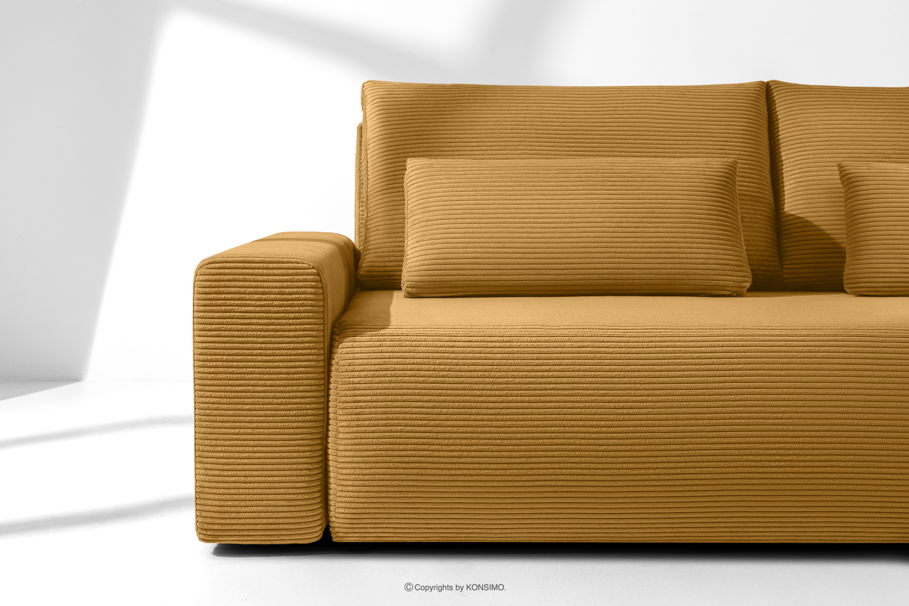 MOLLIS zobacz całą kolekcję Sofa trzyosobowa z poduszkami rozkładana tkanina sztruks żółty- kolor żółty