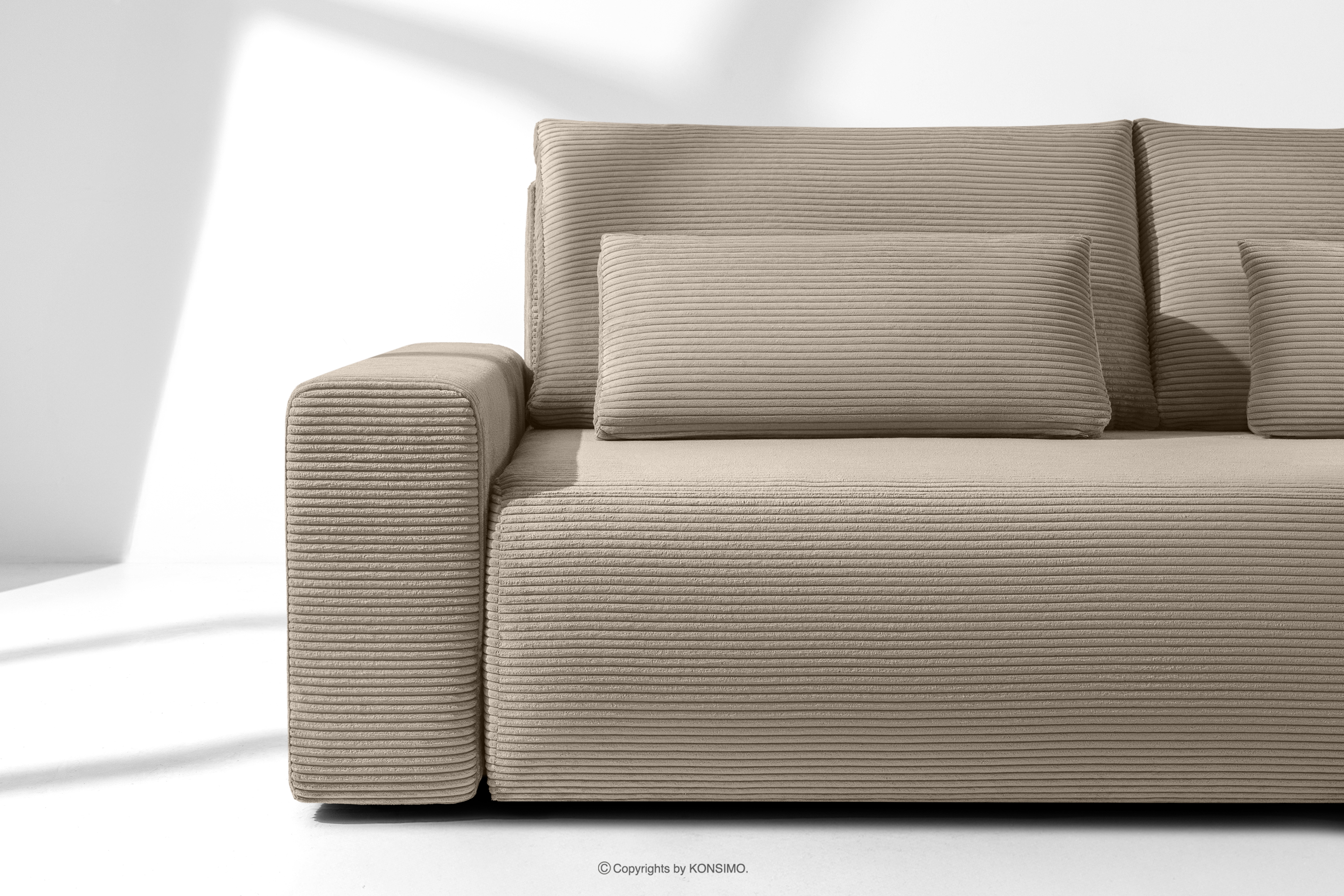 MOLLIS zobacz całą kolekcję Rozkładana sofa z poduszkami tkanina sztruks beżowy- kolor beżowy