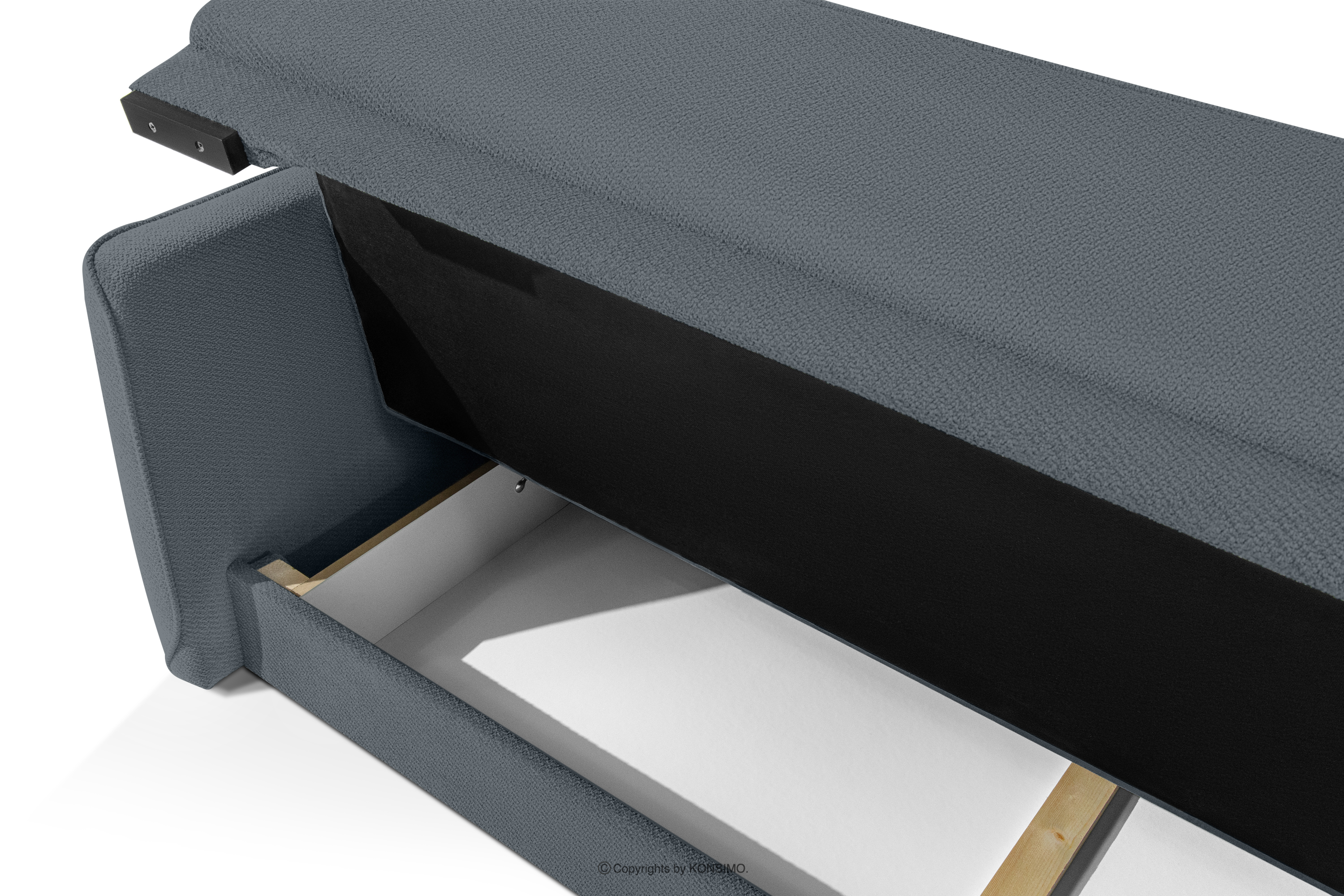 Konstrukcja sofy LIRIS to przykład perfekcyjnego rzemiosła i dbałości o każdy detal. Komfortowe siedzisko oparte jest na sprężynie falistej typu B oraz wysokiej jakości piance HR 35/28 o grubości 14 cm, co gwarantuje wyjątkową miękkość i długotrwałe użytkowanie. Podobne rozwiązanie zastosowano w oparciu, które dzięki identycznej konstrukcji zapewnia idealne podparcie dla pleców podczas relaksu, a także równomierną wygodę przy rozłożeniu wersalki. Podłokietniki wykonane z pianki HR 35/28 o grubości 3 cm od góry i po bokach stanowią ergonomiczne uzupełnienie całości. Praktycznym atutem sofy jest pojemnik na pościel ukryty pod siedziskiem, który pozwala na utrzymanie porządku i oszczędność miejsca w mieszkaniu.