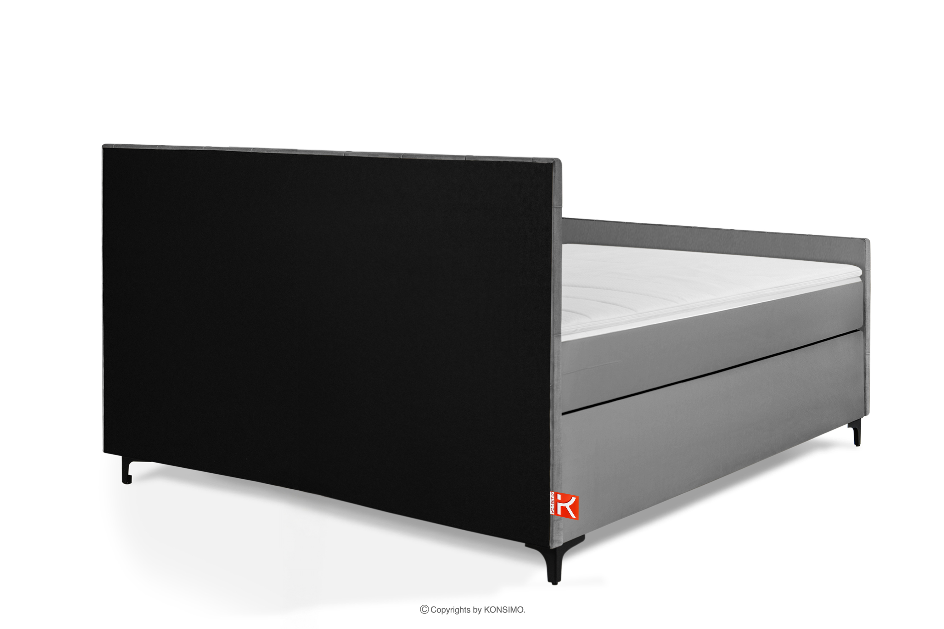 - Dodatkowe informacje: skrzynia obita od góry tkaniną antypoślizgową zapobiegającą przesuwaniu materaca, wymienny materac w pokrowcu w kolorze tapicerki