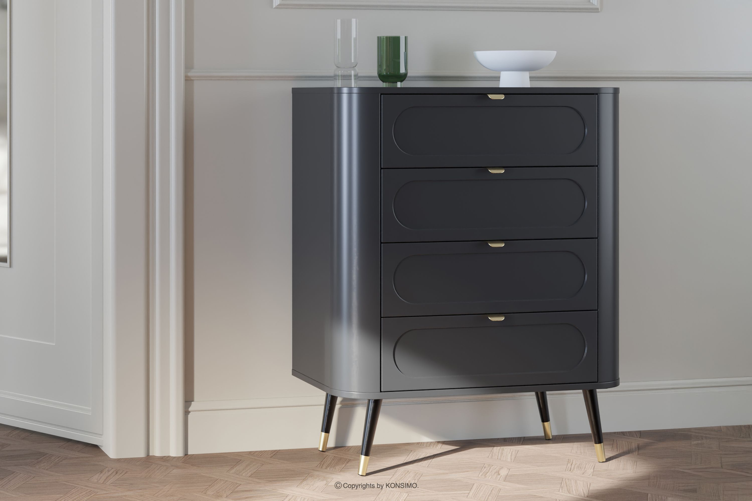 LONA zobacz całą kolekcję Wysoka zaokrąglona komoda z szufladami czarny- kolor czarny