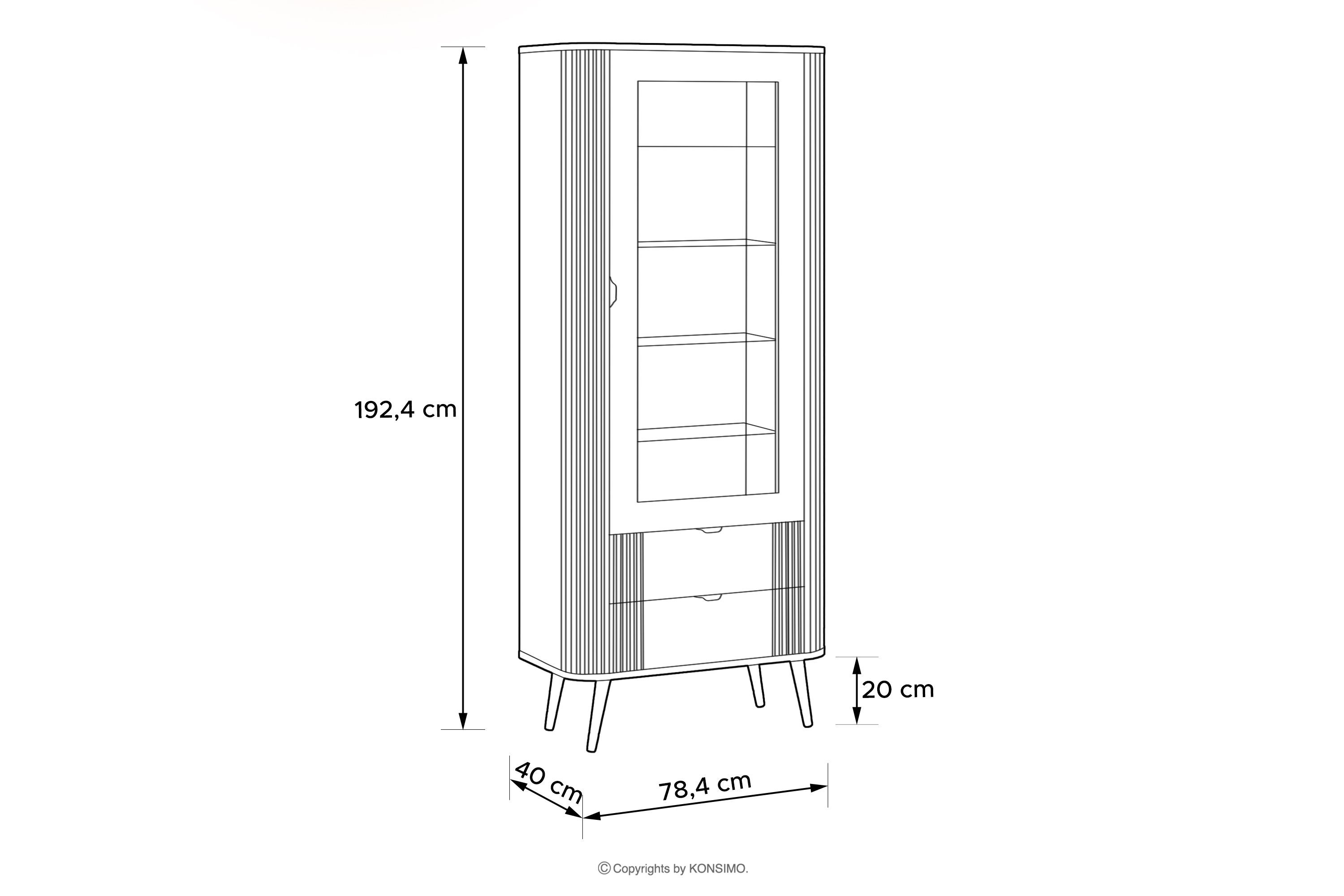 Witryna z ryflowaniem kremowy to kwintesencja nowoczesnego designu, który harmonijnie łączy funkcjonalność z wyrafinowaną estetyką. Czarna kolorystyka wprowadza do wnętrza nutę nowoczesności i elegancji, jednocześnie zapewniając uniwersalność, która pozwala na swobodne komponowanie z różnorodnymi stylami aranżacyjnymi. Fronty wykonane z 18-milimetrowego MDF-u o idealnie gładkiej powierzchni tworzą minimalistyczną formę z drobnymi zdobieniami, która stanowi doskonałe tło dla starannie dobranych czarnych uchwytów.