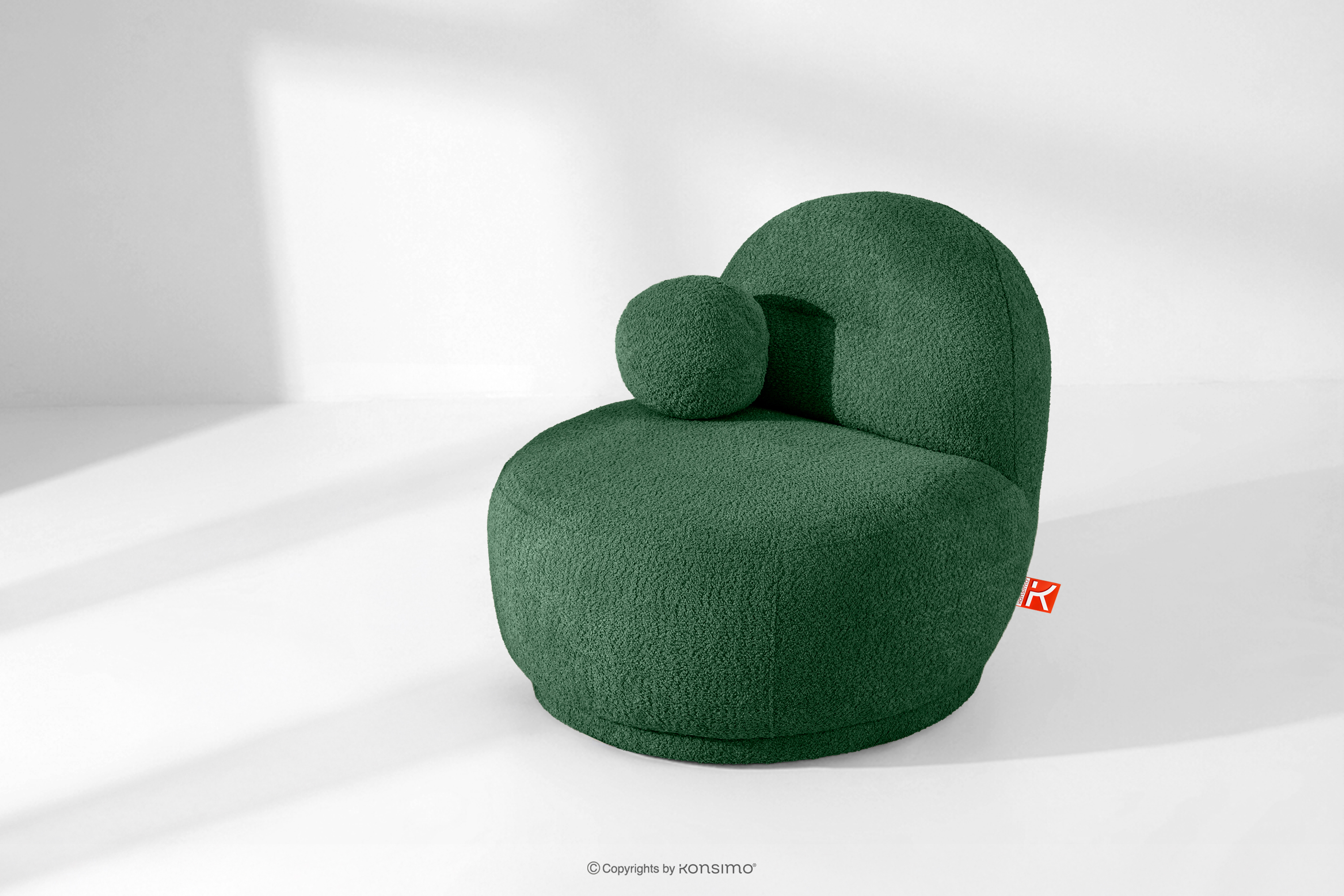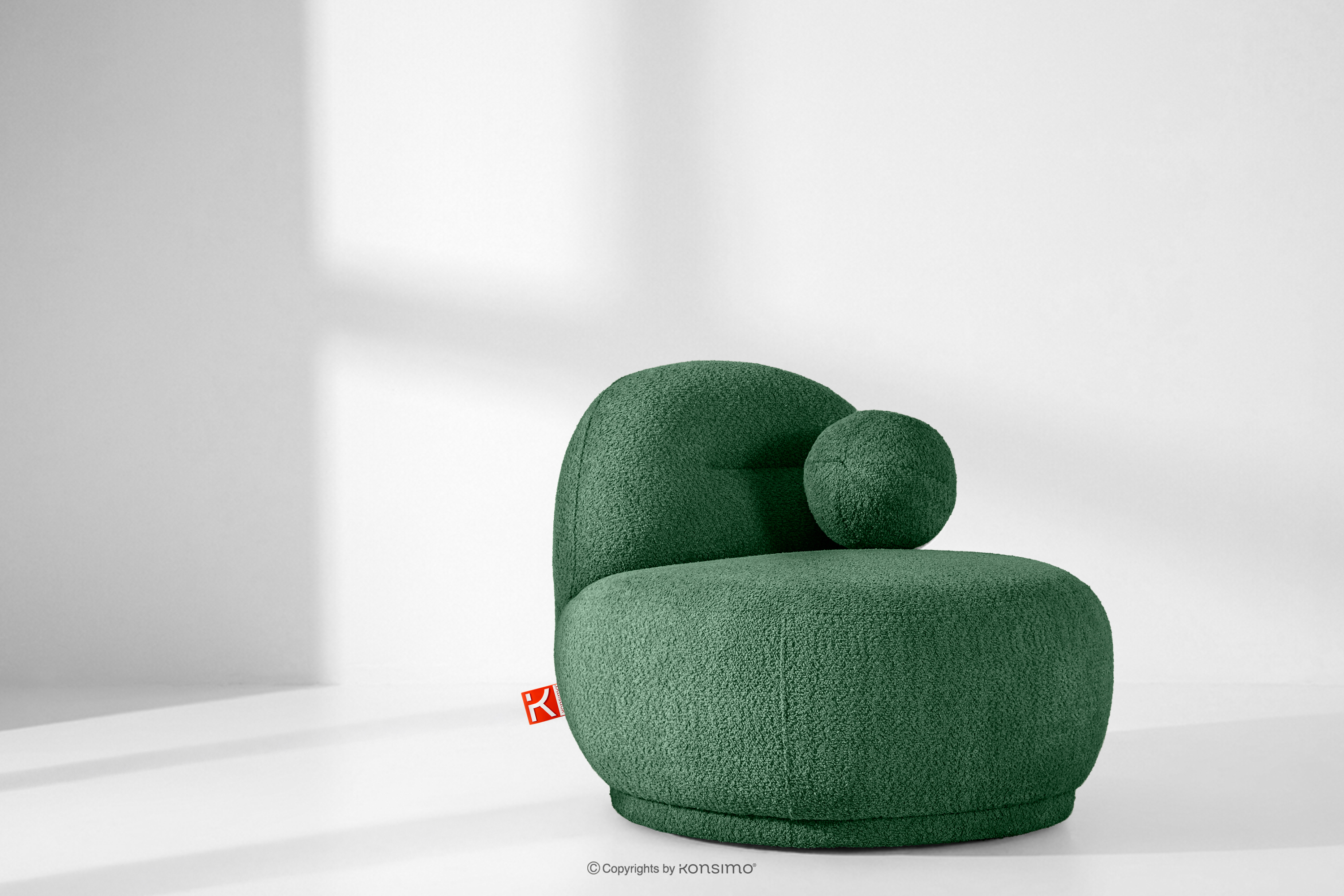 MALVE zobacz całą kolekcję Fotel w tkaninie boucle w stylu japandi ciemny zielony- kolor ciemny zielony
