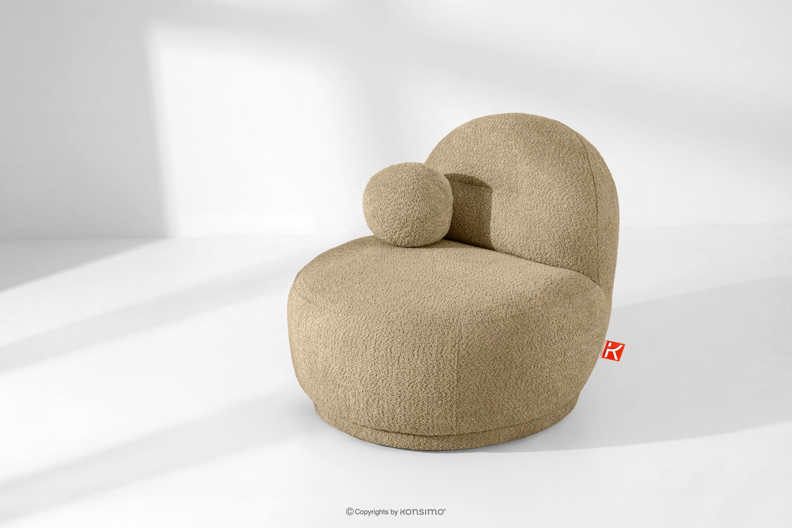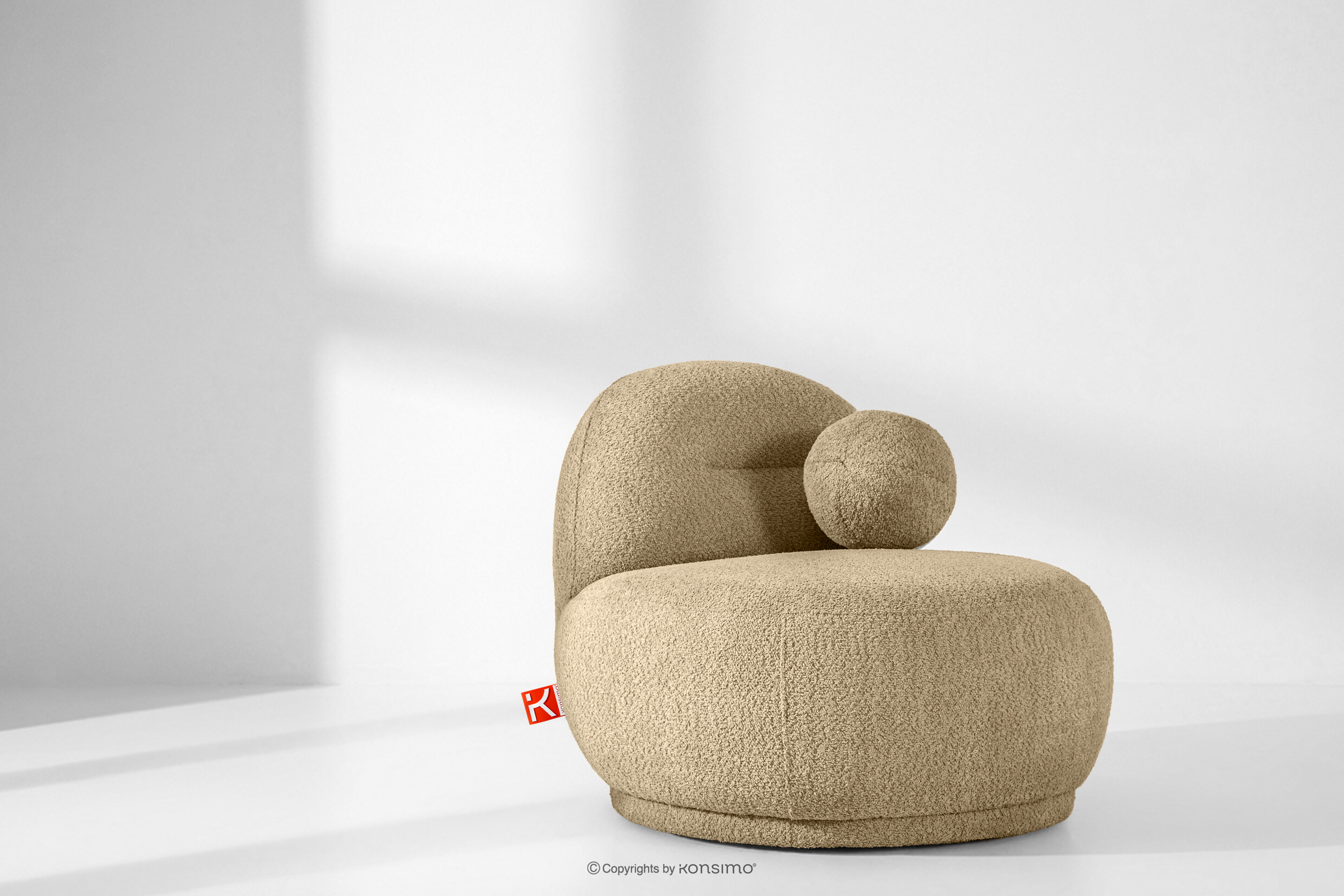 MALVE zobacz całą kolekcję Fotel w tkaninie boucle w stylu japandi ciemny beżowy- kolor ciemny beżowy