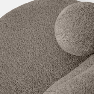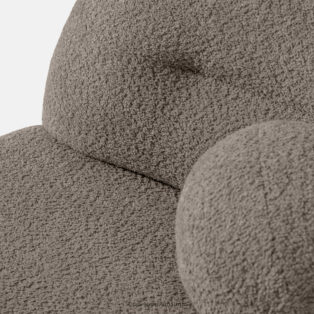 Fotel w tkaninie boucle w stylu japandi chłodny brązowy