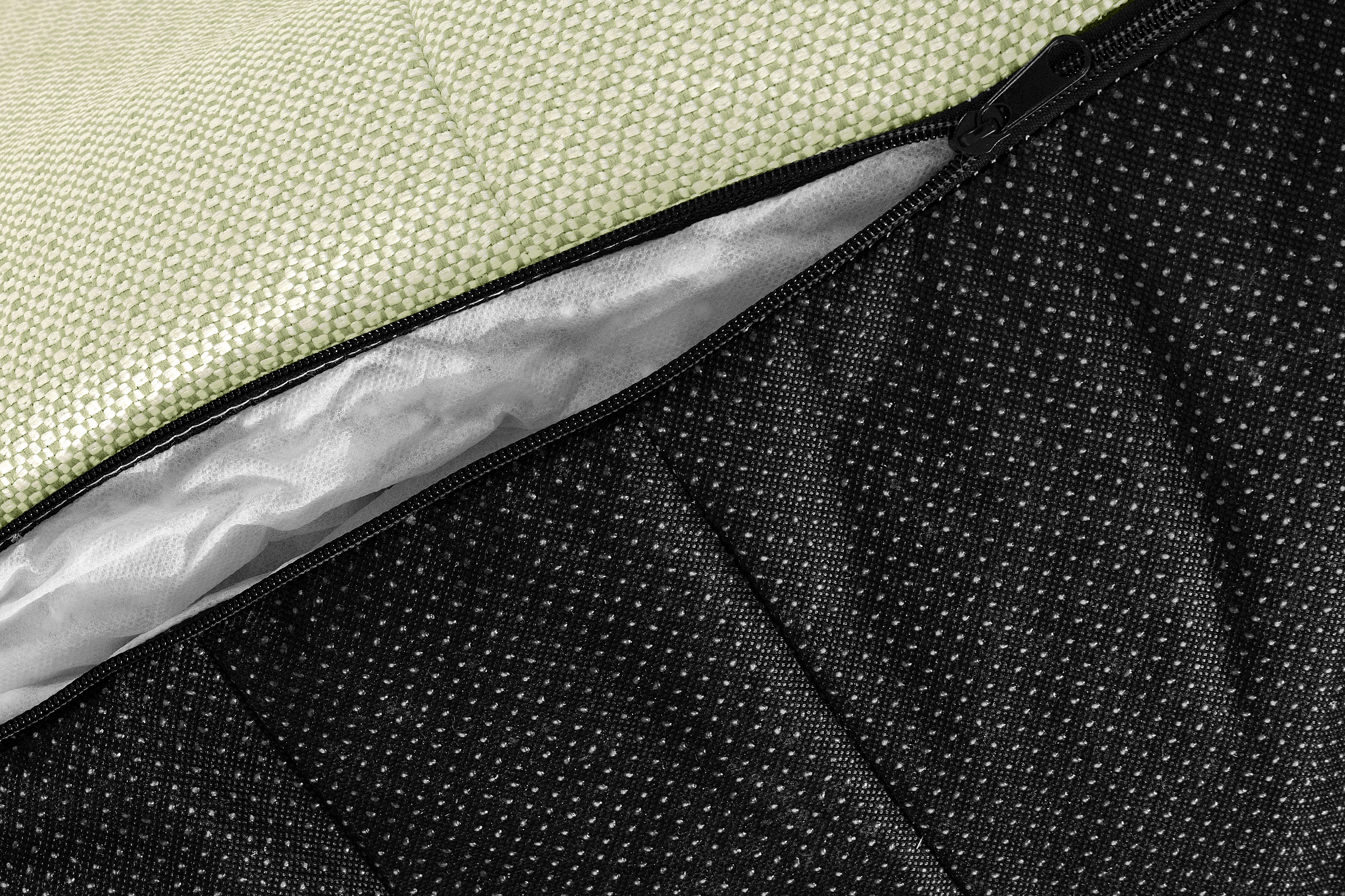 - Dodatkowe informacje: pokrowiec zewnętrzny z tkaniny wodoodpornej wszyty w stukturę mebla, chowany do środka i zamykany na zamek, spód mebla z tkaniny antypoślizgowej, uchwyt z pasa tapicerskiego ułatwiający przenoszenie, wszyta gumka w pokrowiec zapobiegająca zsuwaniu się z mebla
