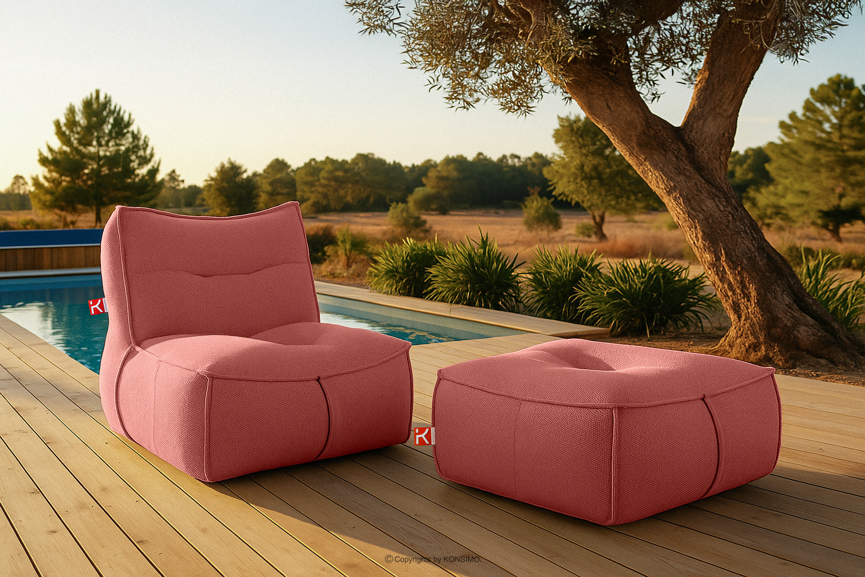 LOVIA zobacz całą kolekcję Wygodny fotel ogrodowy w tkaninie plecionej outdoorowej czerwony/biały- kolor czerwony/biały
