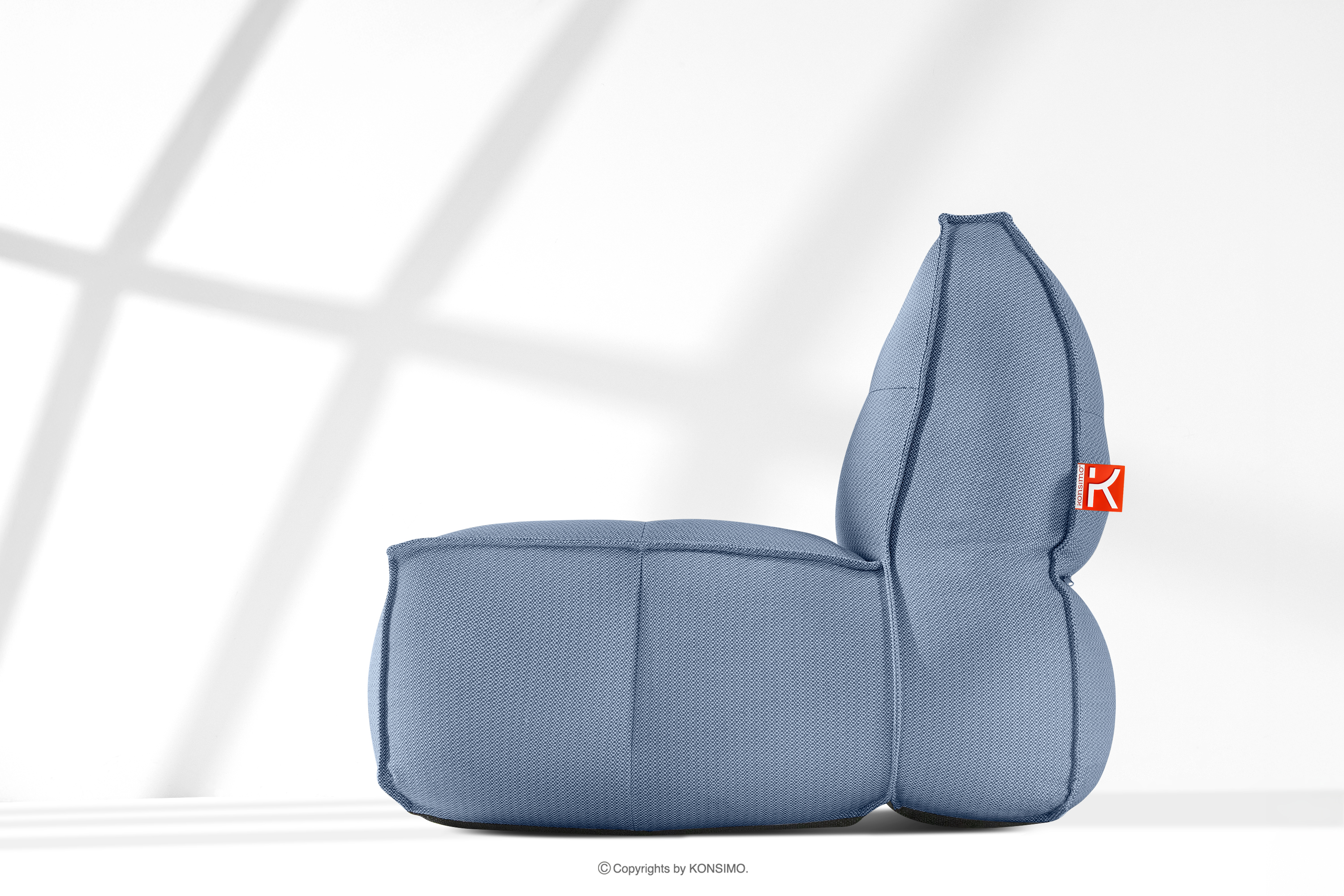 - Dodatkowe informacje: pokrowiec zewnętrzny z tkaniny wodoodpornej wszyty w stukturę mebla, chowany do środka i zamykany na zamek, spód mebla z tkaniny antypoślizgowej, uchwyt z pasa tapicerskiego ułatwiający przenoszenie, wszyta gumka w pokrowiec zapobiegająca zsuwaniu się z mebla