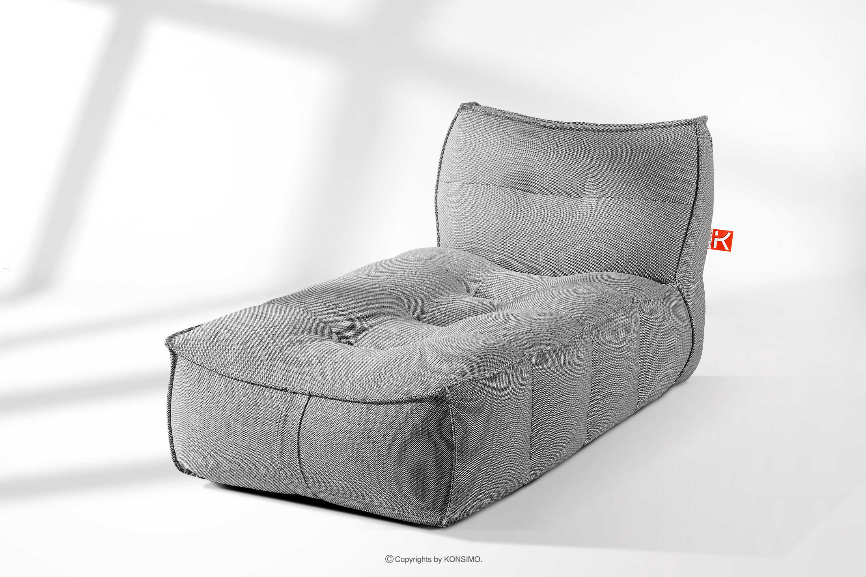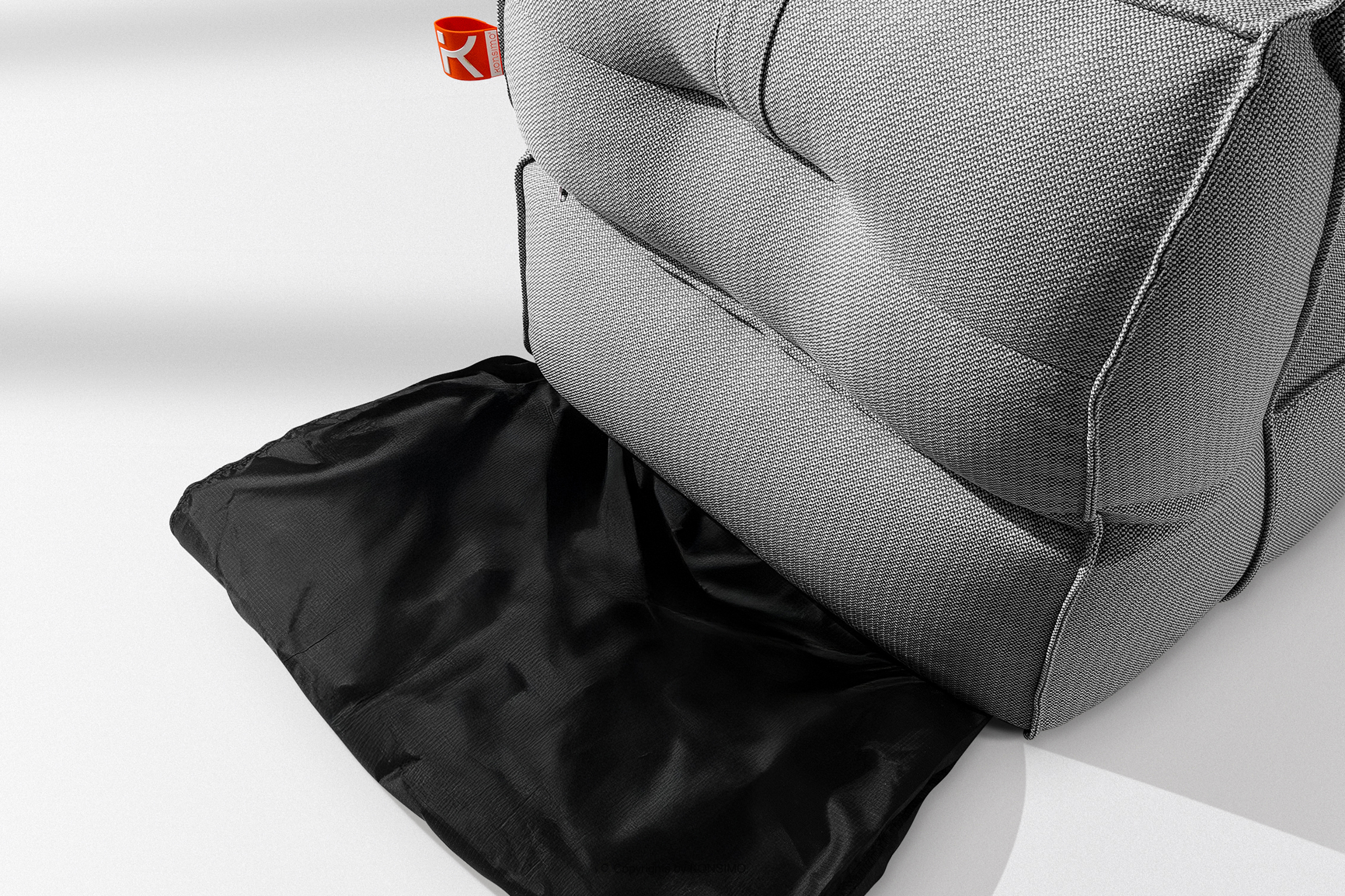 - Dodatkowe informacje: pokrowiec zewnętrzny z tkaniny wodoodpornej wszyty w stukturę mebla, chowany do środka i zamykany na zamek, spód mebla z tkaniny antypoślizgowej, uchwyt z pasa tapicerskiego ułatwiający przenoszenie, wszyta gumka w pokrowiec zapobiegająca zsuwaniu się z mebla