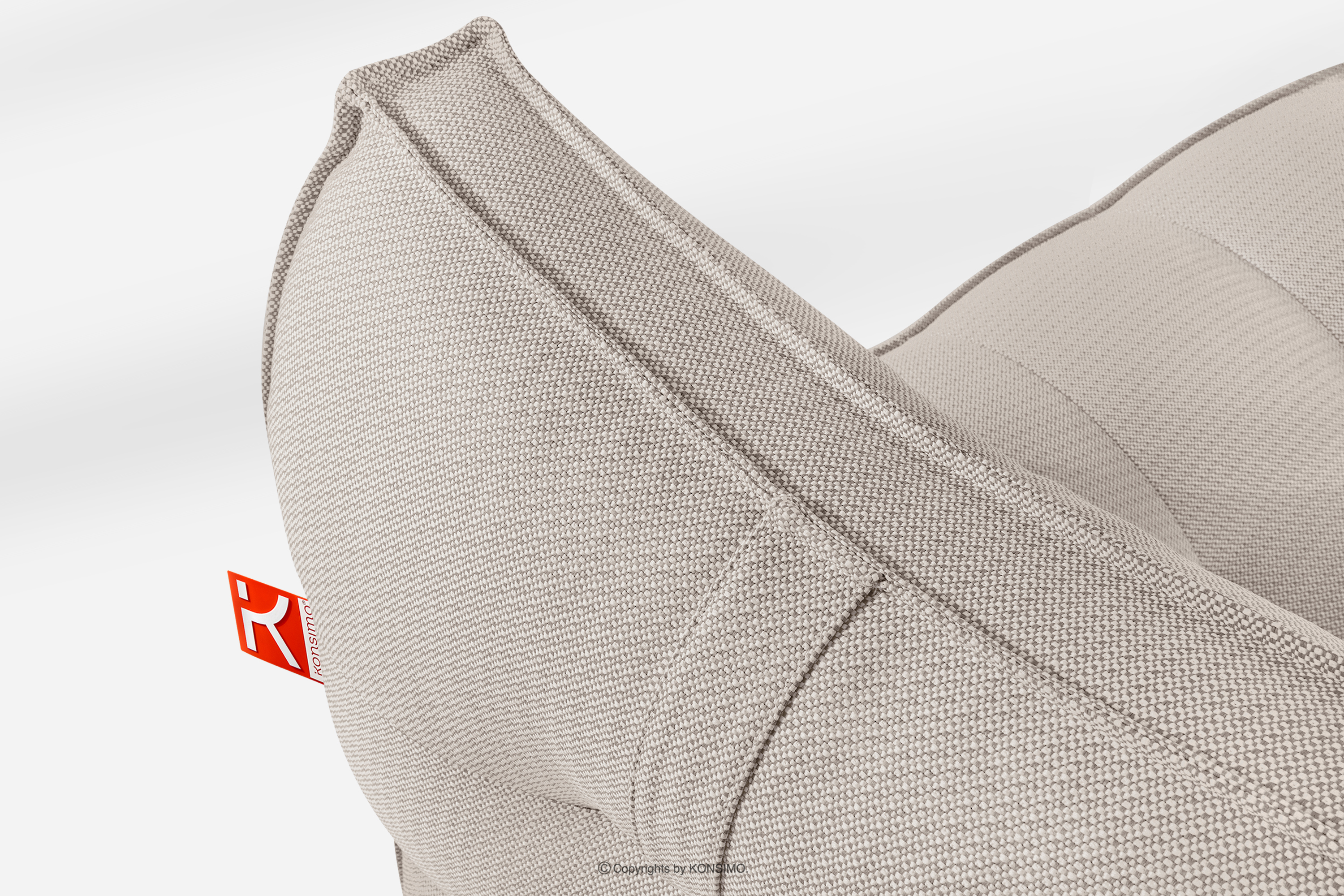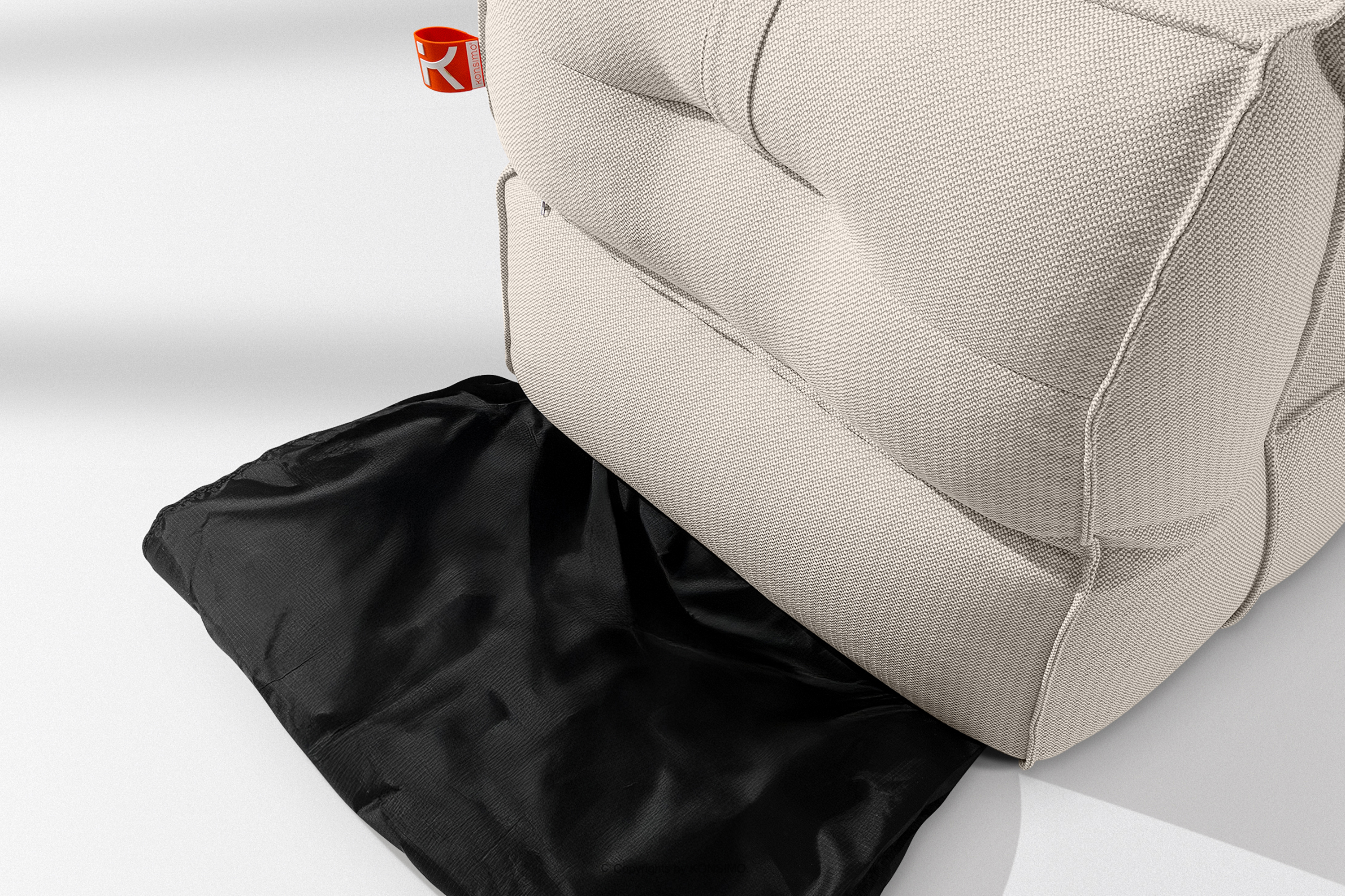 - Dodatkowe informacje: pokrowiec zewnętrzny z tkaniny wodoodpornej wszyty w stukturę mebla, chowany do środka i zamykany na zamek, spód mebla z tkaniny antypoślizgowej, uchwyt z pasa tapicerskiego ułatwiający przenoszenie, wszyta gumka w pokrowiec zapobiegająca zsuwaniu się z mebla
