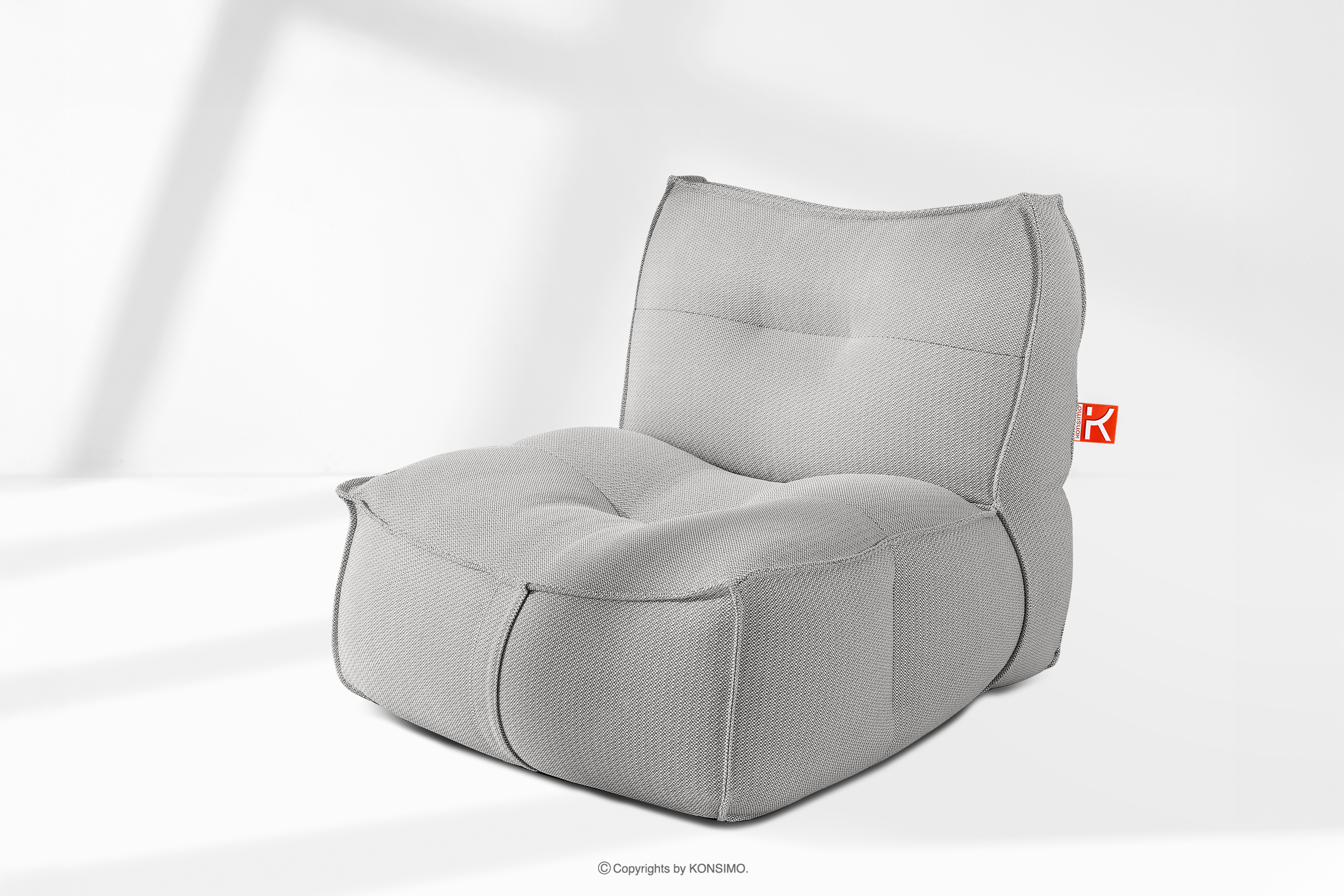 To, co wyróżnia mebel na tle innych, to przemyślana konstrukcja i innowacyjne podejście do funkcjonalności. Pokrowiec zewnętrzny, który jest wszyty w strukturę mebla, to genialne rozwiązanie. W razie potrzeby można go łatwo schować do środka i zamykać na zamek, co jest niezwykle praktyczne i estetyczne. Na krawędziach pokrowca wszyta jest gumka zapobiegająca zsuwaniu się z mebla, co gwarantuje, że wszystko pozostanie na swoim miejscu. Pokrowiec wykonany jest z tkaniny wodoodpornej, która skutecznie zabezpiecza mebel przed kaprysami pogody, a jednocześnie jest to oddychający mikrostrukturalny materiał, który gwarantuje brak powstawania wilgoci i pleśni. Dzięki temu meble pozostają świeże i higieniczne przez cały rok. Błyskawiczne rozkładanie i zamykanie pokrowca to kolejny atut, oszczędzający Twój czas i wysiłek. Myśląc o mobilności i wygodzie przenoszenia, do mebla wszyte są uchwyty (w tej samej tkaninie co obicie), które ułatwiają relokację mebli w zależności od Twoich potrzeb. Spód mebla został wykończony tkaniną antypoślizgową, co zapewnia stabilność i bezpieczeństwo użytkowania na każdej powierzchni. Wnętrze mebla jest otwierane na zamek, co daje możliwość dołożenia wypełnienia w razie potrzeby, a to właśnie wypełnienie sprawia, że mebel nie zmienia kształtu. Siedzisko nie ubija się, pozostaje elastyczne przez lata i wraca do swojej pierwotnej formy nawet po długotrwałym nacisku. Co więcej, mebel dopasowuje się do wagi i kształtu człowieka, co w połączeniu z jego elastycznością zapewnia niezrównany komfort użytkowania.