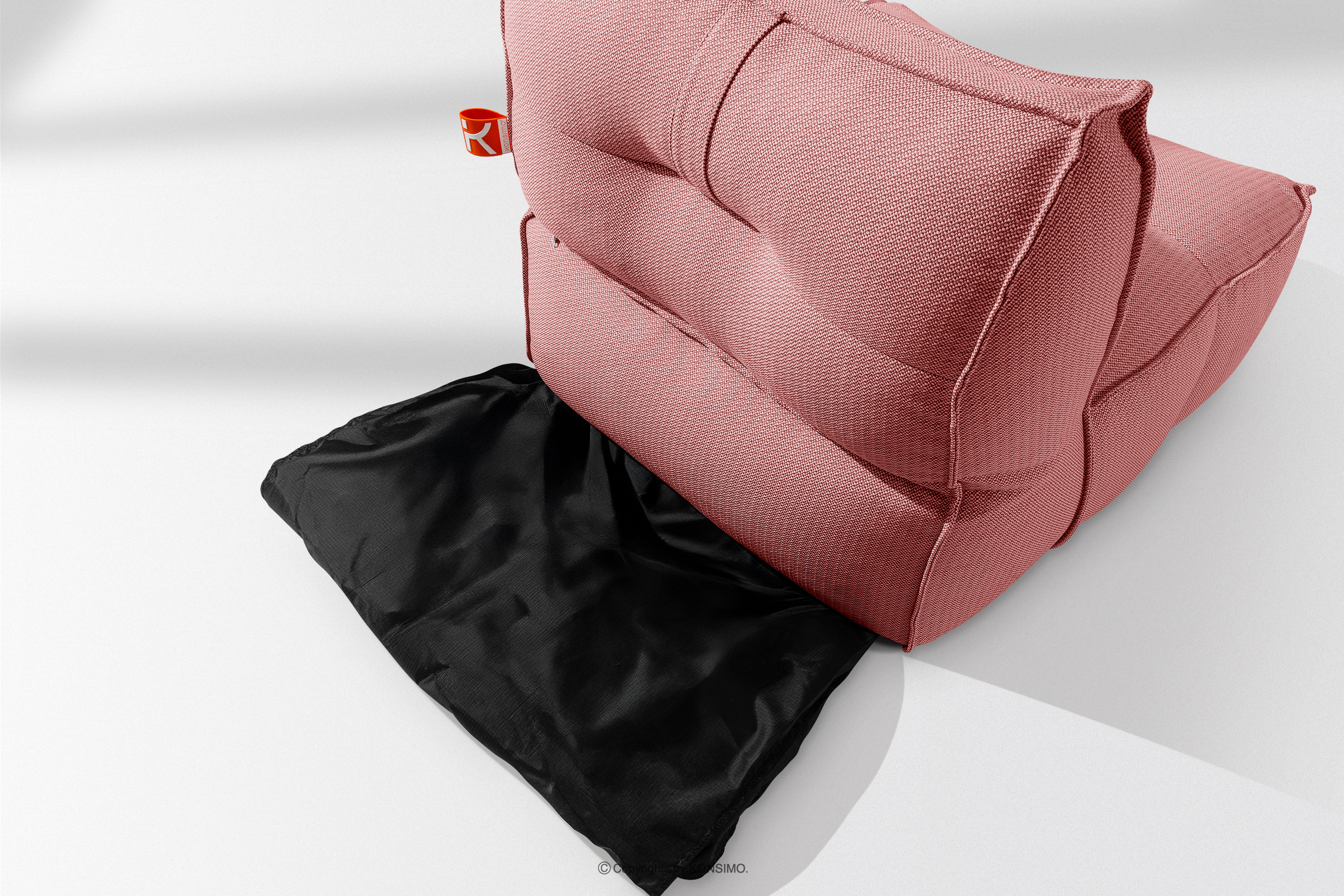 • Dodatkowe informacje: pokrowiec zewnętrzny z tkaniny wodoodpornej wszyty w stukturę mebla, chowany do środka i zamykany na zamek, spód mebla z tkaniny antypoślizgowej, uchwyt z pasa tapicerskiego ułatwiający przenoszenie, wszyta gumka w pokrowiec zapobiegająca zsuwaniu się z mebla