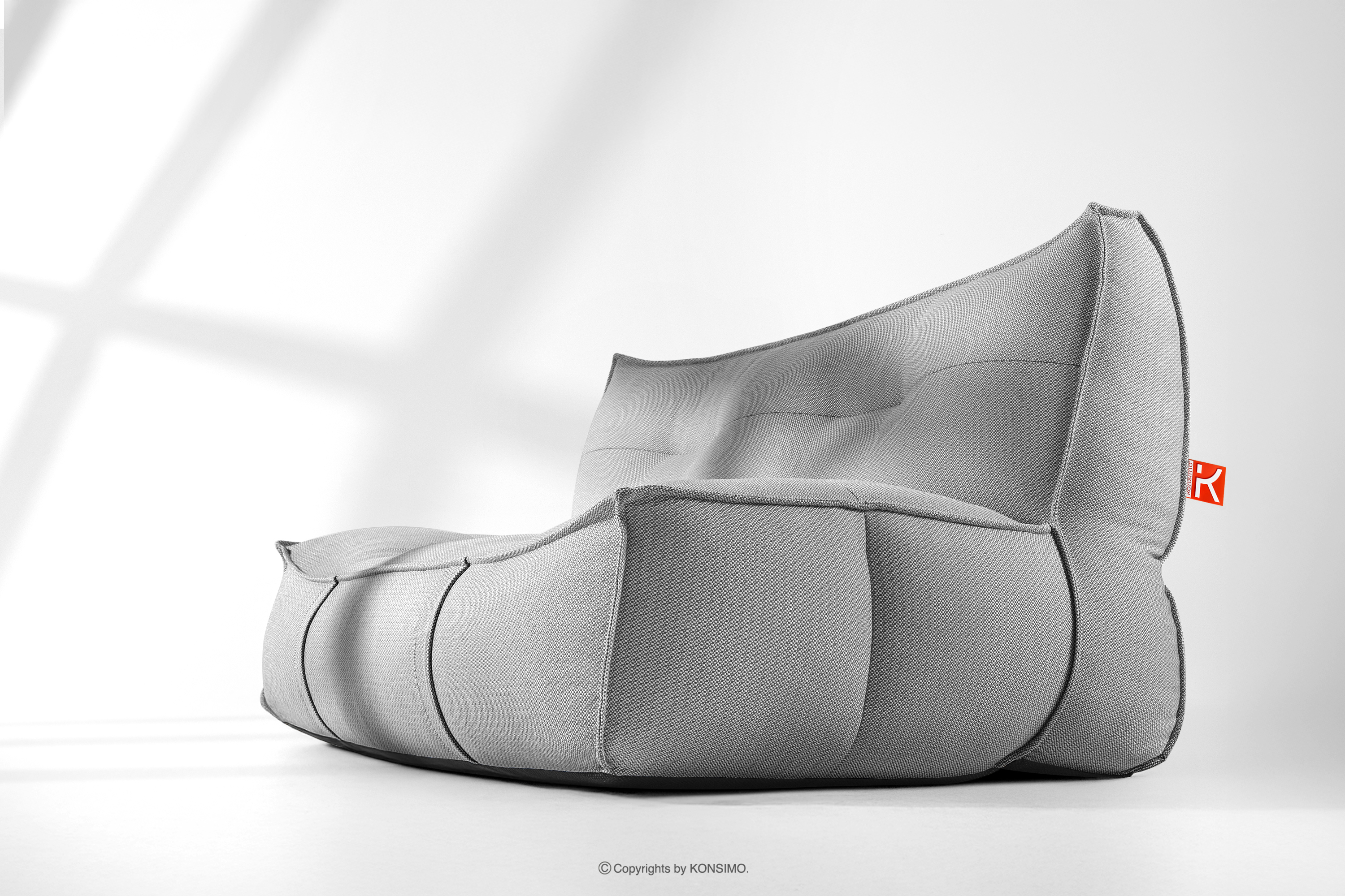- Dodatkowe informacje: pokrowiec zewnętrzny z tkaniny wodoodpornej wszyty w stukturę mebla, chowany do środka i zamykany na zamek, spód mebla z tkaniny antypoślizgowej, uchwyt z pasa tapicerskiego ułatwiający przenoszenie, wszyta gumka w pokrowiec zapobiegająca zsuwaniu się z mebla