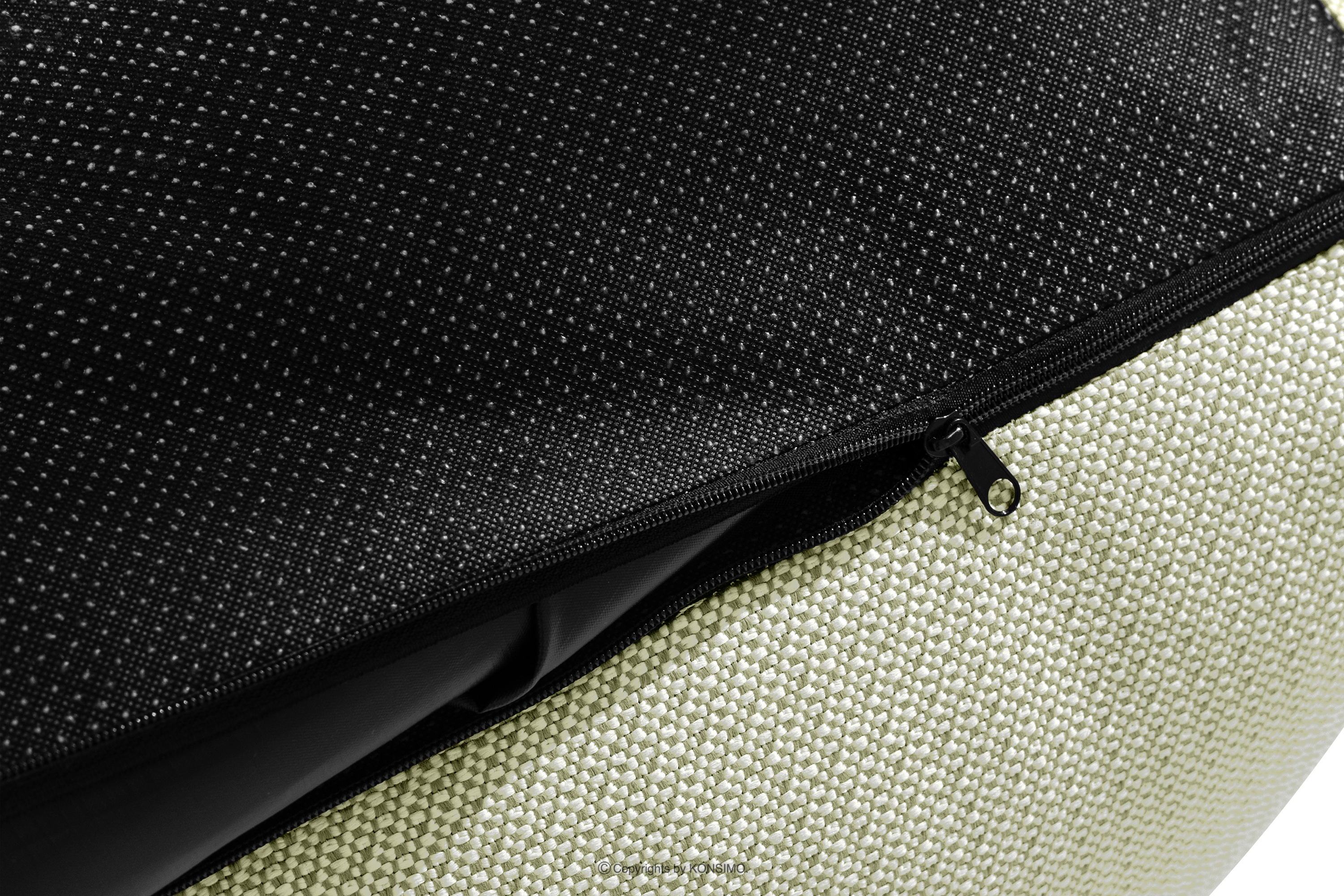 - Dodatkowe informacje: pokrowiec zewnętrzny z tkaniny wodoodpornej wszyty w stukturę mebla, chowany do środka i zamykany na zamek, spód mebla z tkaniny antypoślizgowej, uchwyt z pasa tapicerskiego ułatwiający przenoszenie, wszyta gumka w pokrowiec zapobiegająca zsuwaniu się z mebla