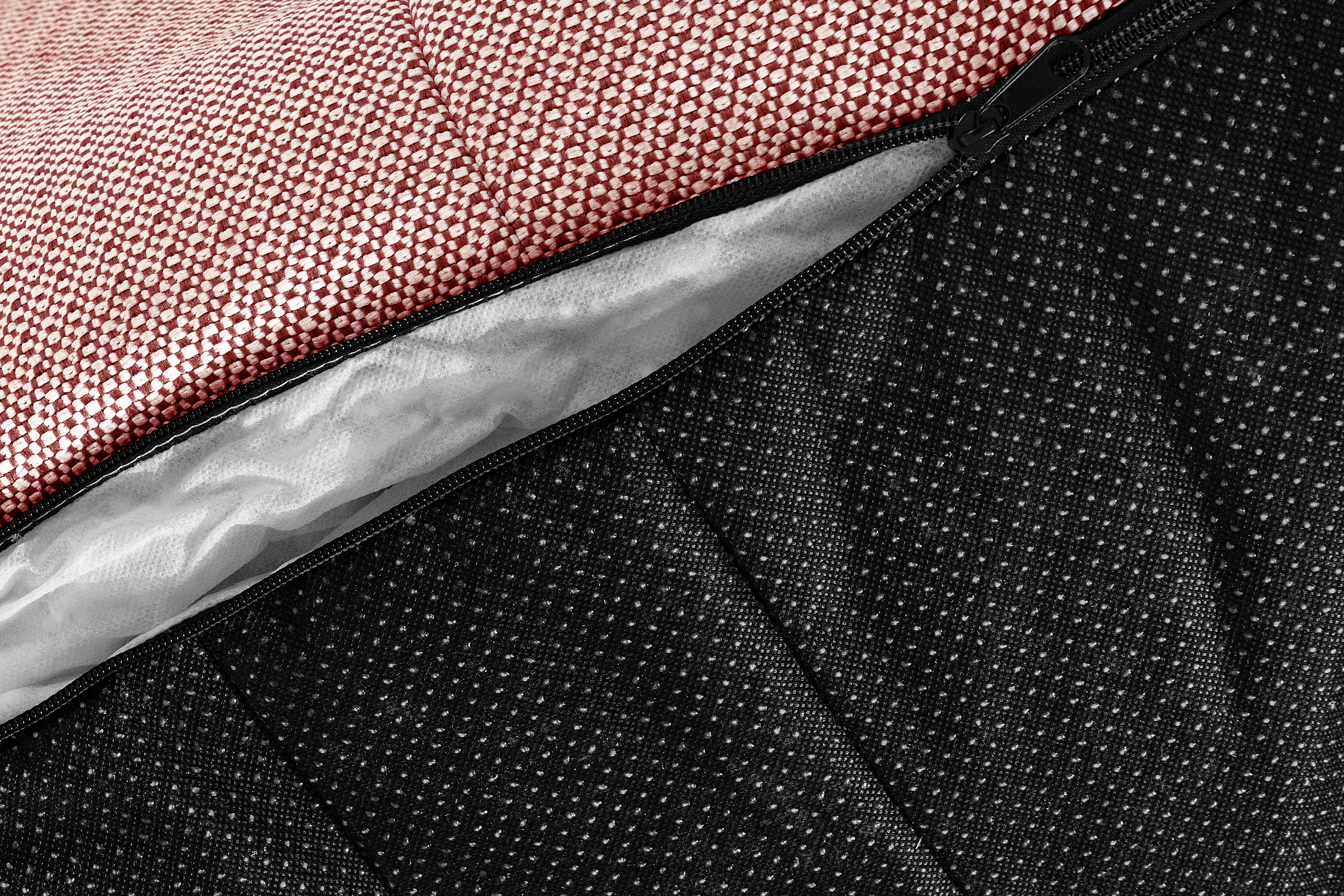 To, co wyróżnia mebel na tle innych, to przemyślana konstrukcja i innowacyjne podejście do funkcjonalności. Pokrowiec zewnętrzny, który jest wszyty w strukturę mebla, to genialne rozwiązanie. W razie potrzeby można go łatwo schować do środka i zamykać na zamek, co jest niezwykle praktyczne i estetyczne. Na krawędziach pokrowca wszyta jest gumka zapobiegająca zsuwaniu się z mebla, co gwarantuje, że wszystko pozostanie na swoim miejscu. Pokrowiec wykonany jest z tkaniny wodoodpornej, która skutecznie zabezpiecza mebel przed kaprysami pogody, a jednocześnie jest to oddychający mikrostrukturalny materiał, który gwarantuje brak powstawania wilgoci i pleśni. Dzięki temu meble pozostają świeże i higieniczne przez cały rok. Błyskawiczne rozkładanie i zamykanie pokrowca to kolejny atut, oszczędzający Twój czas i wysiłek. Myśląc o mobilności i wygodzie przenoszenia, do mebla wszyte są uchwyty (w tej samej tkaninie co obicie), które ułatwiają relokację mebli w zależności od Twoich potrzeb. Spód mebla został wykończony tkaniną antypoślizgową, co zapewnia stabilność i bezpieczeństwo użytkowania na każdej powierzchni. Wnętrze mebla jest otwierane na zamek, co daje możliwość dołożenia wypełnienia w razie potrzeby, a to właśnie wypełnienie sprawia, że mebel nie zmienia kształtu. Siedzisko nie ubija się, pozostaje elastyczne przez lata i wraca do swojej pierwotnej formy nawet po długotrwałym nacisku. Co więcej, mebel dopasowuje się do wagi i kształtu człowieka, co w połączeniu z jego elastycznością zapewnia niezrównany komfort użytkowania.