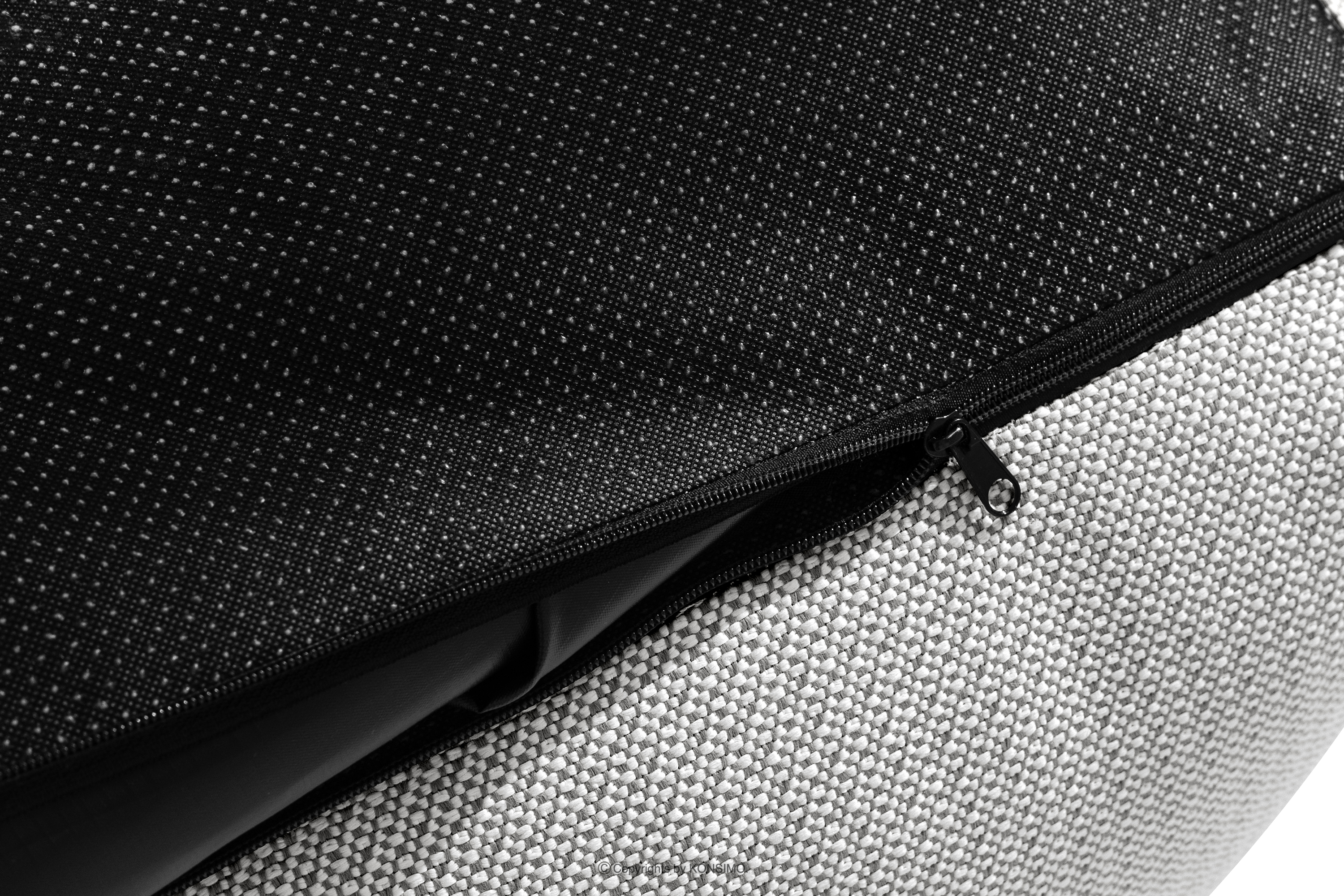 To, co wyróżnia mebel na tle innych, to przemyślana konstrukcja i innowacyjne podejście do funkcjonalności. Pokrowiec zewnętrzny, który jest wszyty w strukturę mebla, to genialne rozwiązanie. W razie potrzeby można go łatwo schować do środka i zamykać na zamek, co jest niezwykle praktyczne i estetyczne. Na krawędziach pokrowca wszyta jest gumka zapobiegająca zsuwaniu się z mebla, co gwarantuje, że wszystko pozostanie na swoim miejscu. Pokrowiec wykonany jest z tkaniny wodoodpornej, która skutecznie zabezpiecza mebel przed kaprysami pogody, a jednocześnie jest to oddychający mikrostrukturalny materiał, który gwarantuje brak powstawania wilgoci i pleśni. Dzięki temu meble pozostają świeże i higieniczne przez cały rok. Błyskawiczne rozkładanie i zamykanie pokrowca to kolejny atut, oszczędzający Twój czas i wysiłek. Myśląc o mobilności i wygodzie przenoszenia, do mebla wszyte są uchwyty (w tej samej tkaninie co obicie), które ułatwiają relokację mebli w zależności od Twoich potrzeb. Spód mebla został wykończony tkaniną antypoślizgową, co zapewnia stabilność i bezpieczeństwo użytkowania na każdej powierzchni. Wnętrze mebla jest otwierane na zamek, co daje możliwość dołożenia wypełnienia w razie potrzeby, a to właśnie wypełnienie sprawia, że mebel nie zmienia kształtu. Siedzisko nie ubija się, pozostaje elastyczne przez lata i wraca do swojej pierwotnej formy nawet po długotrwałym nacisku. Co więcej, mebel dopasowuje się do wagi i kształtu człowieka, co w połączeniu z jego elastycznością zapewnia niezrównany komfort użytkowania.