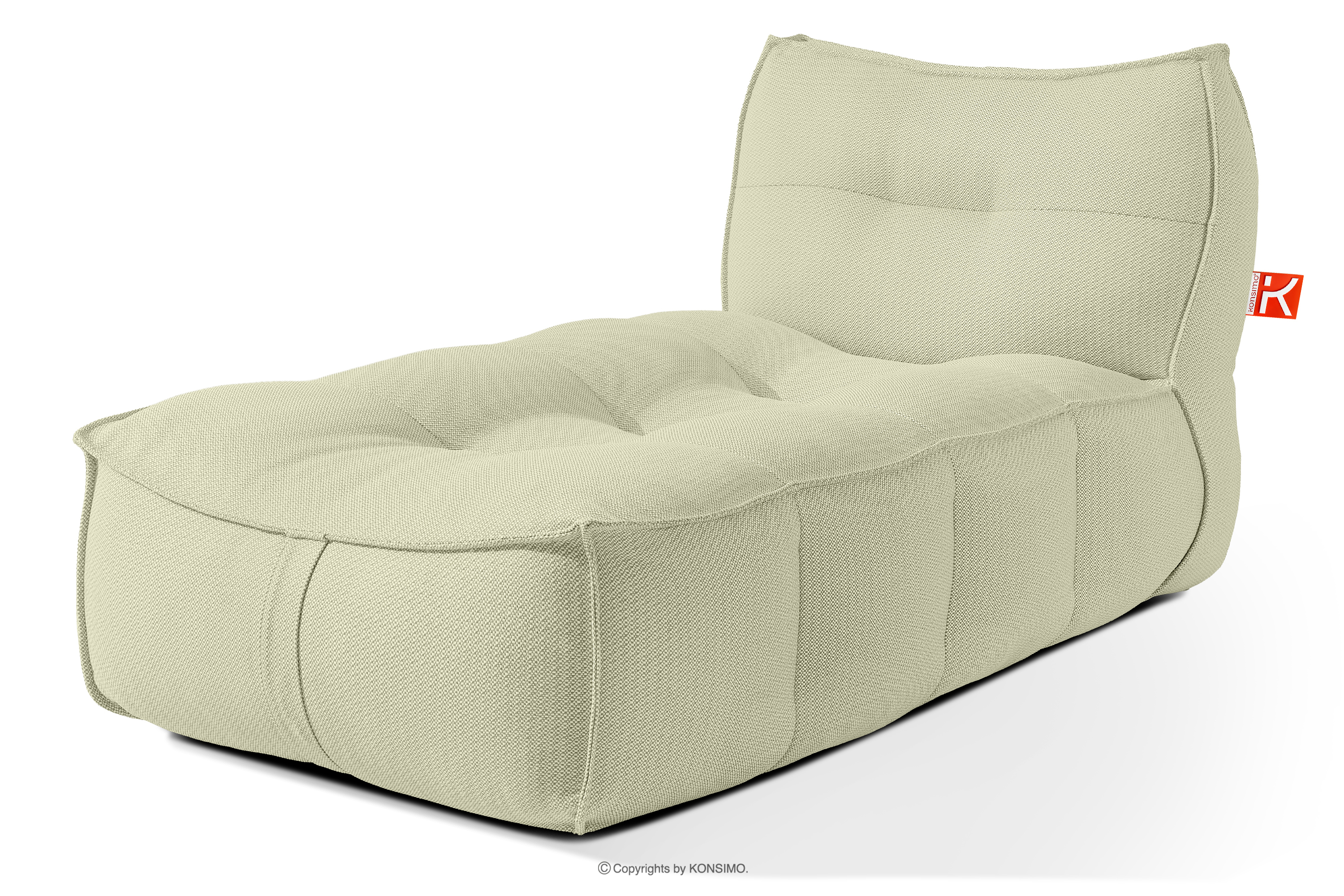 • Dodatkowe informacje: pokrowiec zewnętrzny z tkaniny wodoodpornej wszyty w stukturę mebla, chowany do środka i zamykany na zamek, spód mebla z tkaniny antypoślizgowej, uchwyt z pasa tapicerskiego ułatwiający przenoszenie, wszyta gumka w pokrowiec zapobiegająca zsuwaniu się z mebla