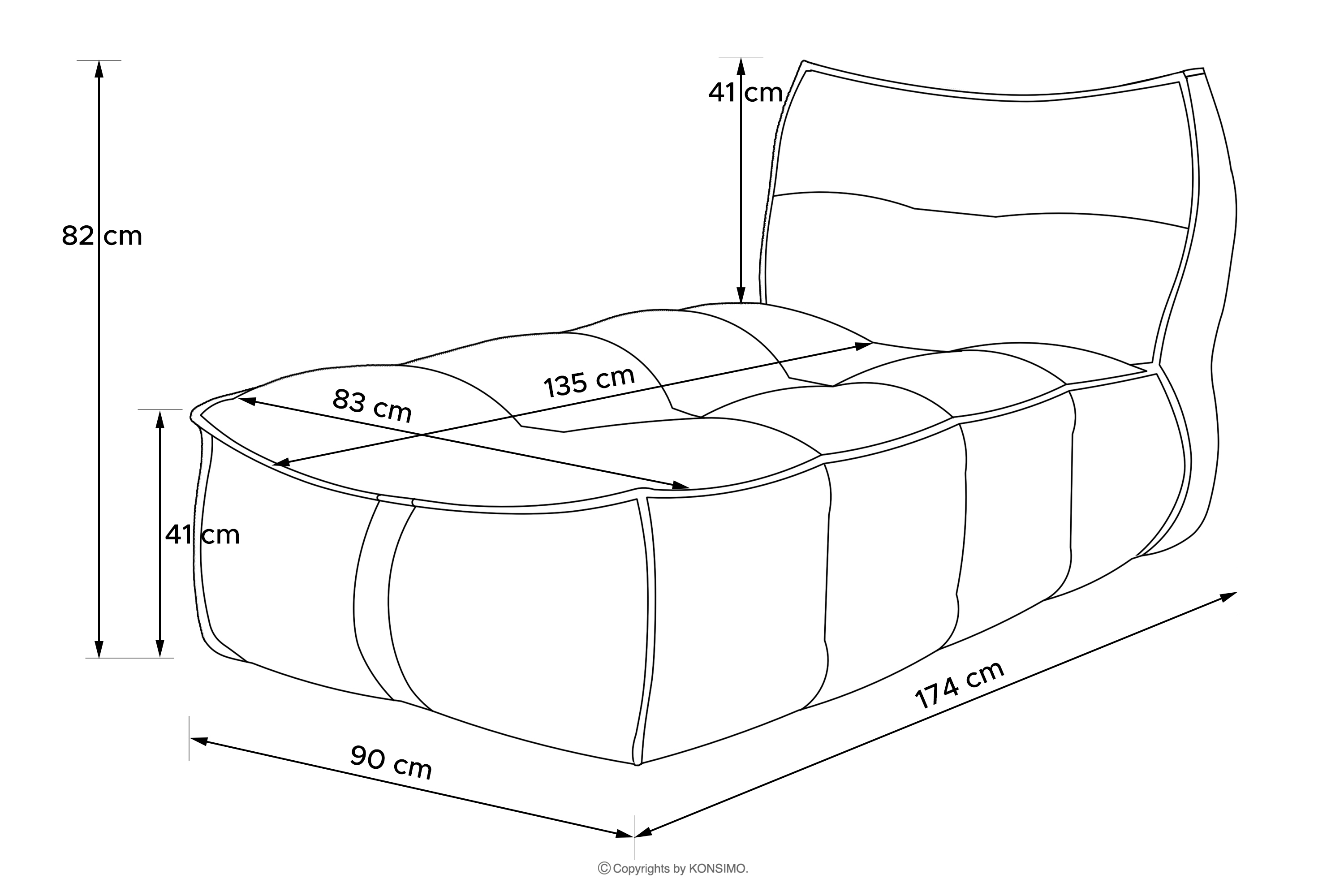 • Szezlong: 90x82x174 cm