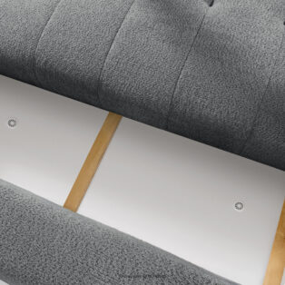 Sofa boucle w stylu japandi ciemny szary doda wnętrzu elementu luksusu i przytulności. Unikalna struktura tkaniny tworzy subtelne wzory, które pięknie współgrają z naturalnym światłem, nadając meblowi głębi i charakteru. Tapicerowana luksusową tkaniną boucle, sofa ta zachwyca swoją miękkością i przyjemnym w dotyku wykończeniem. Innowacyjny system sprężynowy DL zapewnia wyjątkową trwałość i elastyczność siedziska.