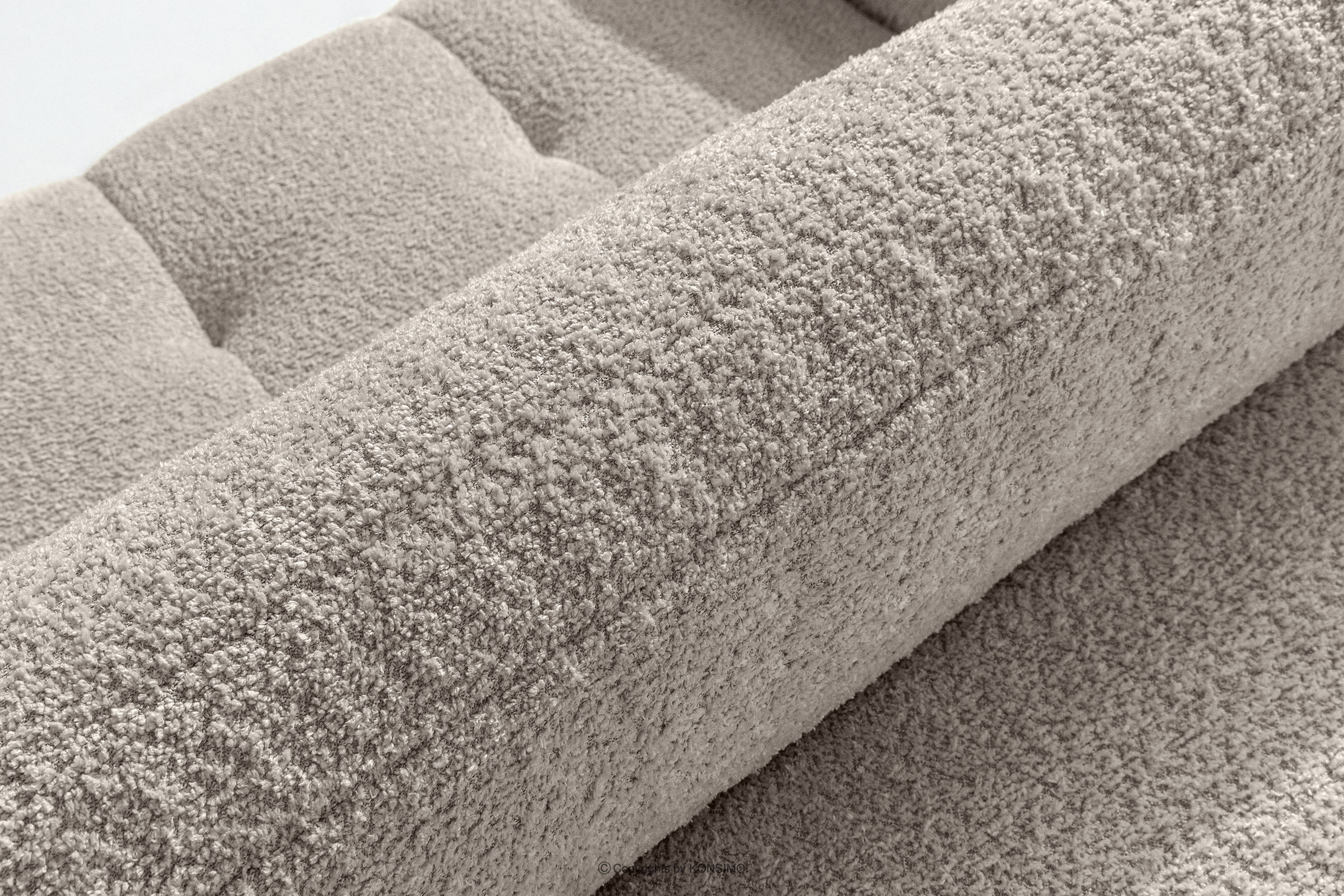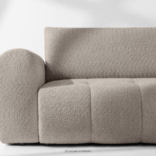 Cała kolekcja, składająca się z sof, puf i narożników, została stworzona z myślą o różnorodnych potrzebach i preferencjach, oferując spójne i elastyczne rozwiązania dla każdego domu. Wszystkie elementy kolekcji doskonale komponują się ze sobą, tworząc harmonijną i elegancką całość, idealną do salonów urządzonych w stylu modern i japandi. Razem tworzą wygodny zestaw wypoczynkowy, który zachwyca wyjątkowymi pikowaniami i wysokiej jakości tkaniną boucle, zapewniającą trwałość i estetykę na lata. Kolekcja jest idealna dla osób ceniących sobie komfort, jakość wykonania i ponadczasowy design, wprowadzając do domu atmosferę relaksu i ukojenia.