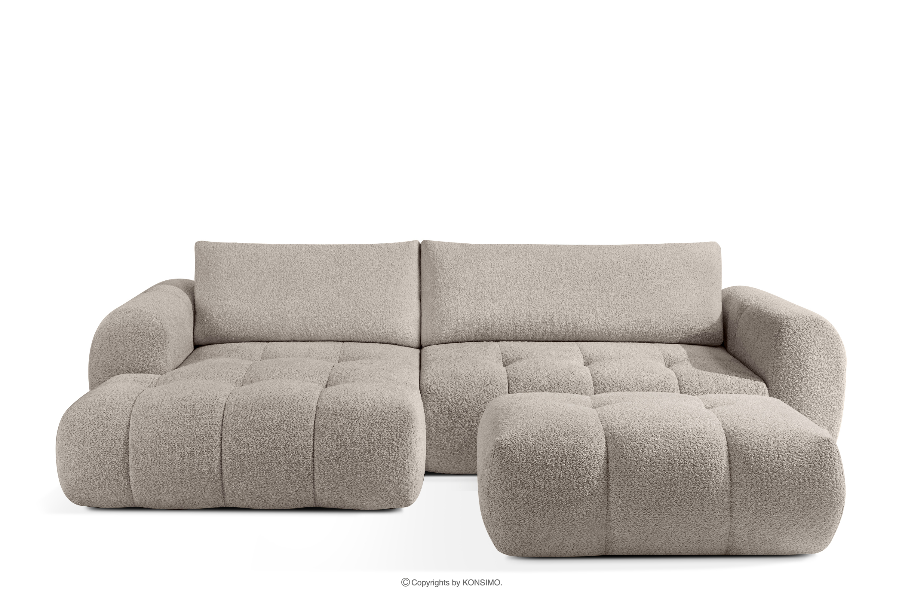 LIRA zobacz całą kolekcję Narożnik lewy i puf w tkaninie boucle szary- kolor szary