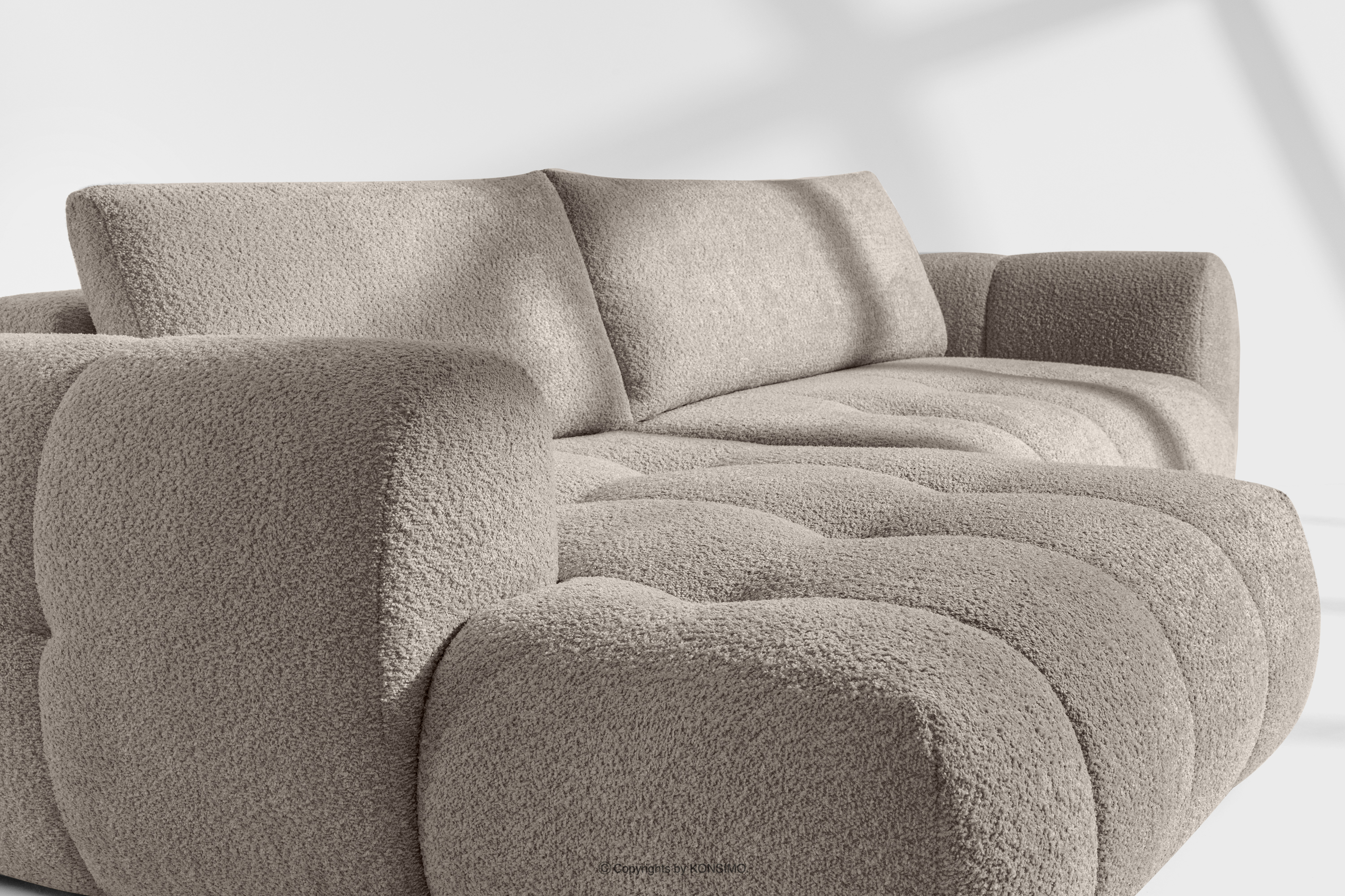 Cała kolekcja, składająca się z sof, puf i narożników, została stworzona z myślą o różnorodnych potrzebach i preferencjach, oferując spójne i elastyczne rozwiązania dla każdego domu. Wszystkie elementy kolekcji doskonale komponują się ze sobą, tworząc harmonijną i elegancką całość, idealną do salonów urządzonych w stylu modern i japandi. Razem tworzą wygodny zestaw wypoczynkowy, który zachwyca wyjątkowymi pikowaniami i wysokiej jakości tkaniną boucle, zapewniającą trwałość i estetykę na lata. Kolekcja jest idealna dla osób ceniących sobie komfort, jakość wykonania i ponadczasowy design, wprowadzając do domu atmosferę relaksu i ukojenia.