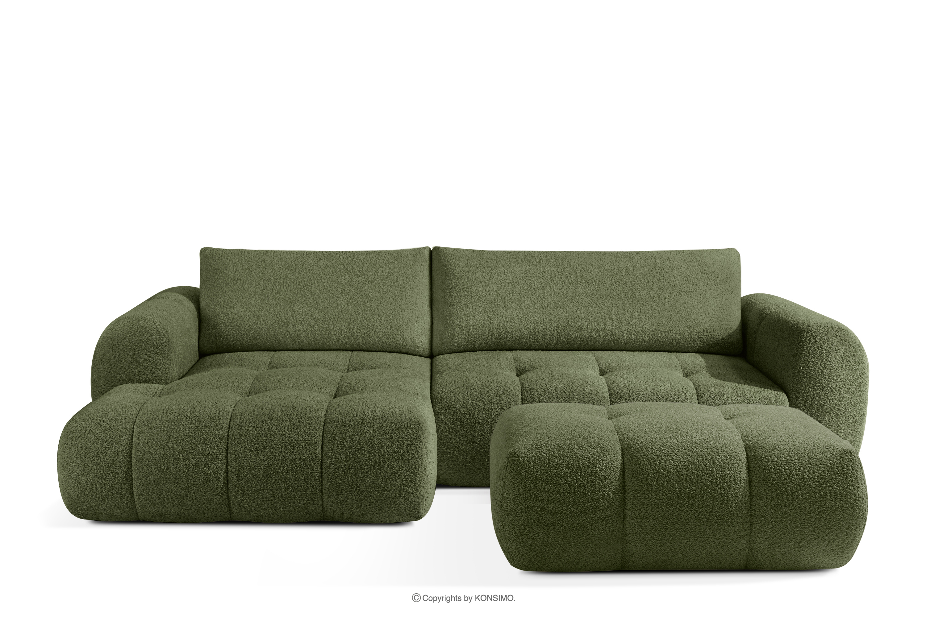 LIRA zobacz całą kolekcję Narożnik lewy i puf boucle oliwkowy- kolor oliwkowy