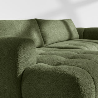 Narożnik lewy i puf boucle oliwkowy doda wnętrzu elementu luksusu i przytulności. Unikalna struktura tkaniny tworzy subtelne wzory, które pięknie współgrają z naturalnym światłem, nadając meblowi głębi i charakteru. Tapicerowana luksusową tkaniną boucle, sofa ta zachwyca swoją miękkością i przyjemnym w dotyku wykończeniem. Innowacyjny system sprężynowy DL zapewnia wyjątkową trwałość i elastyczność siedziska.