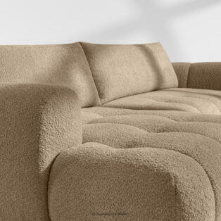 Narożnik lewy i puf w tkaninie boucle beżowy doda wnętrzu elementu luksusu i przytulności. Unikalna struktura tkaniny tworzy subtelne wzory, które pięknie współgrają z naturalnym światłem, nadając meblowi głębi i charakteru. Tapicerowana luksusową tkaniną boucle, sofa ta zachwyca swoją miękkością i przyjemnym w dotyku wykończeniem. Innowacyjny system sprężynowy DL zapewnia wyjątkową trwałość i elastyczność siedziska.