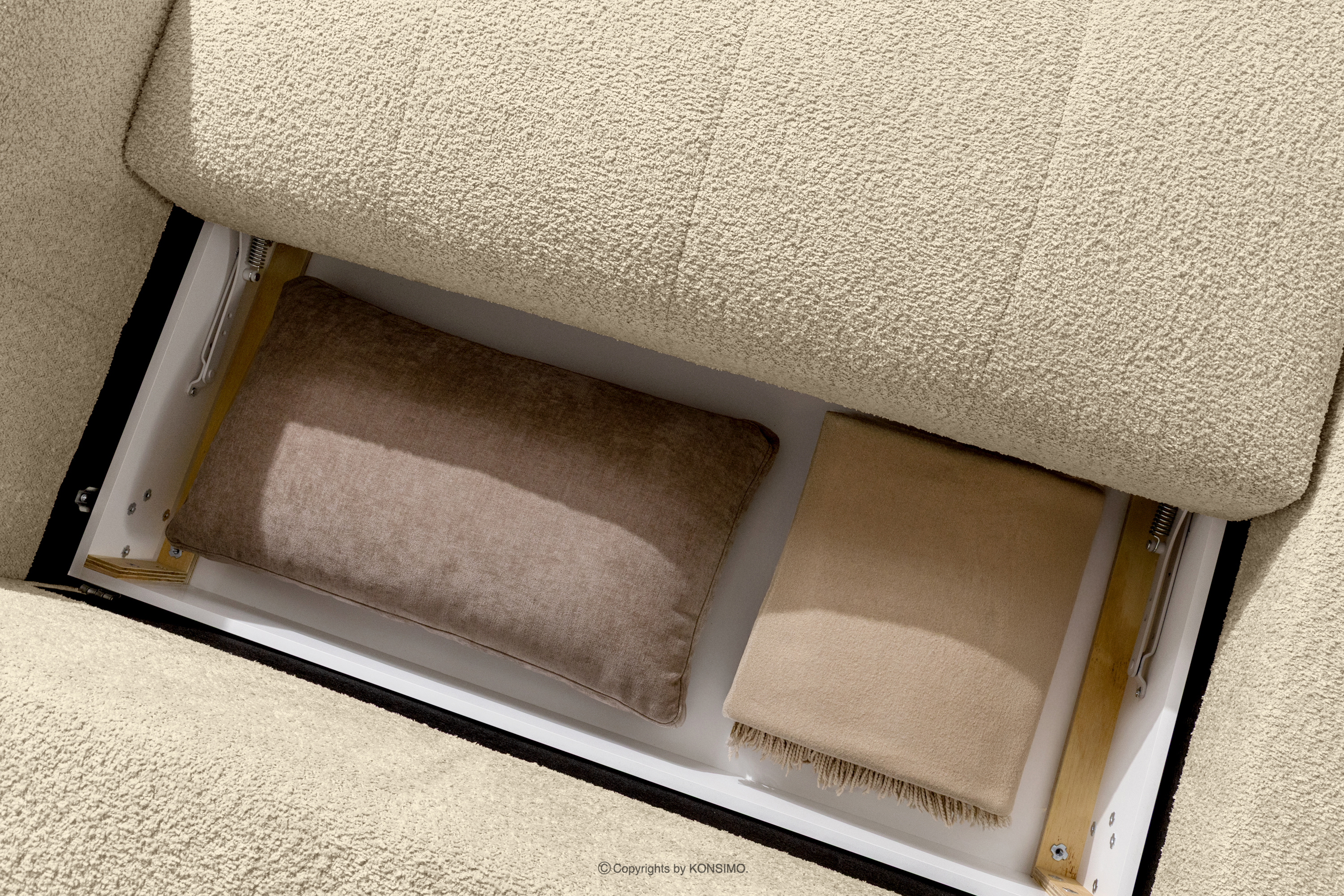 LIRA zobacz całą kolekcję Narożnik lewy i puf w tkaninie boucle jasny beżowy- kolor jasny beżowy