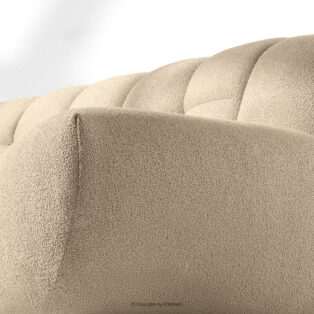 Cała kolekcja VENA emanuje jakością premium, widoczną w każdym szczególe – od solidnego szycia po dopracowane detale. Kluczowym elementem, który wyróżnia meble VENA, jest zastosowanie luksusowej tkaniny boucle. Materiał ten nie tylko zachwyca swoją fakturą i przyjemnością w dotyku, ale również jest niezwykle praktyczny w codziennym użytkowaniu. Tkanina boucle z kolekcji VENA charakteryzuje się łatwością czyszczenia, co jest nieocenione w przypadku drobnych zabrudzeń. Dodatkowo, posiada ona właściwości water repellent, co oznacza utrudnione wchłanianie płynów, dając czas na szybkie usunięcie rozlanych płynów. Wysoka odporność na mechacenie gwarantuje, że meble VENA zachowają swój estetyczny wygląd przez długi czas, nawet przy intensywnym użytkowaniu. Co równie ważne, tkanina boucle spełnia rygorystyczne wymogi Standardu OECOTEX, co potwierdza jej bezpieczeństwo dla zdrowia i środowiska, a także brak szkodliwych substancji. Ekskluzywny charakter kolekcji VENA podkreśla jej unikatowy design, który został nie tylko opatentowany, ale również zarejestrowany jako znak towarowy. To potwierdzenie oryginalności i wyjątkowości tych mebli na rynku.